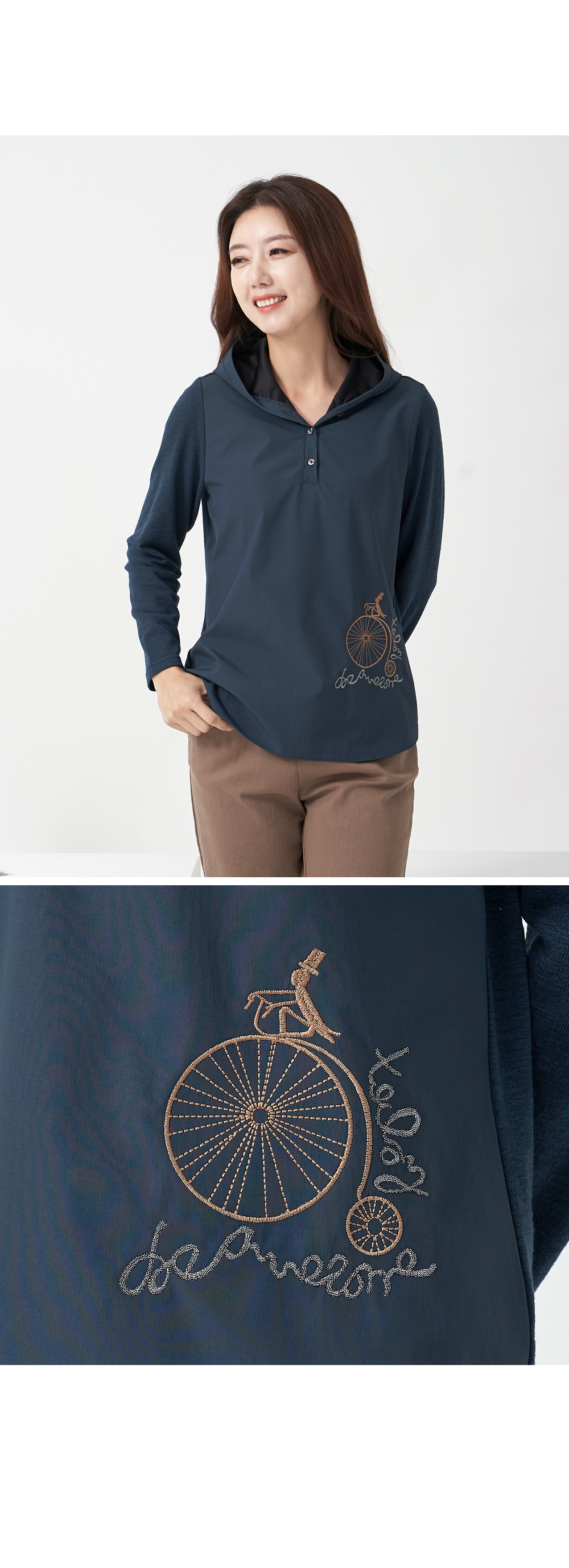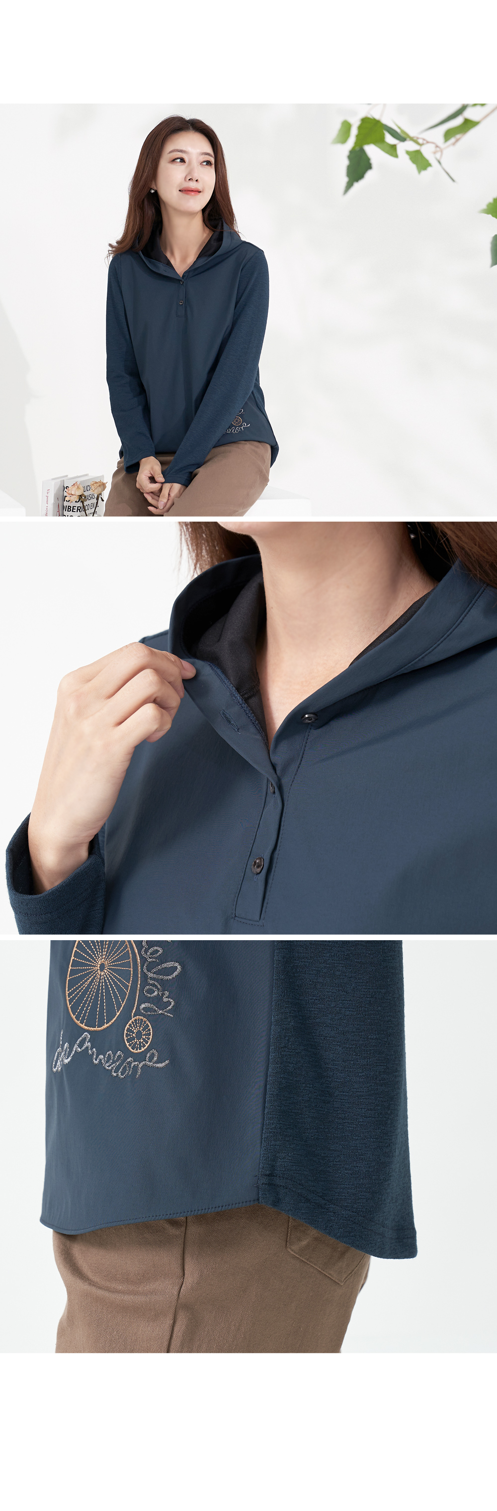• Hem Embroidered Hooded T-shirt-TE209053-