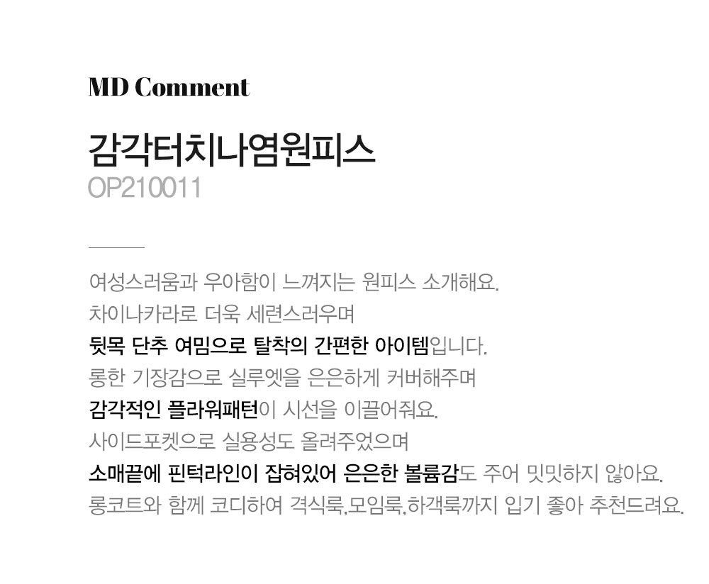 마담4060의 모든 의류 제품은 처음 1~2회 드라이크리닝을 권장합니다.