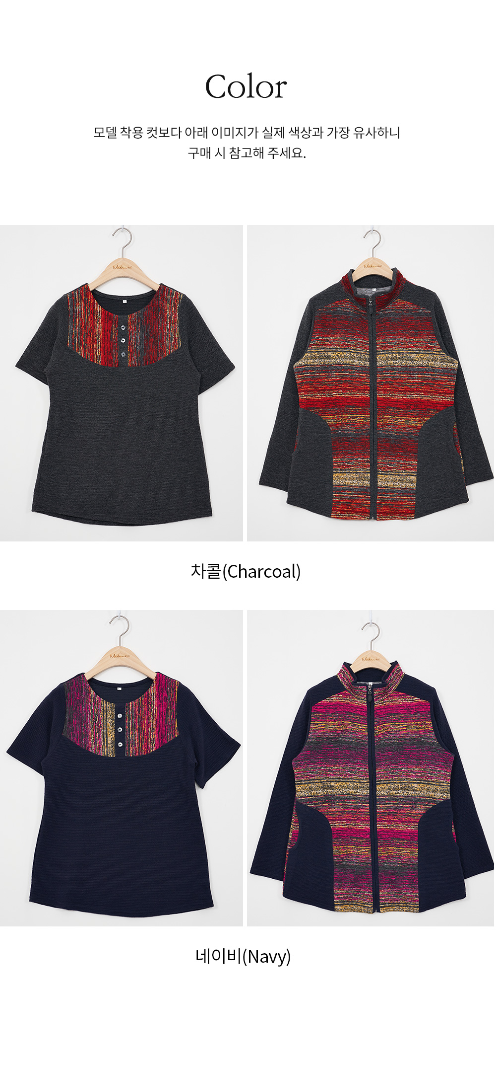 마담4060의 모든 의류 제품은 처음 1~2회 드라이크리닝을 권장합니다.
