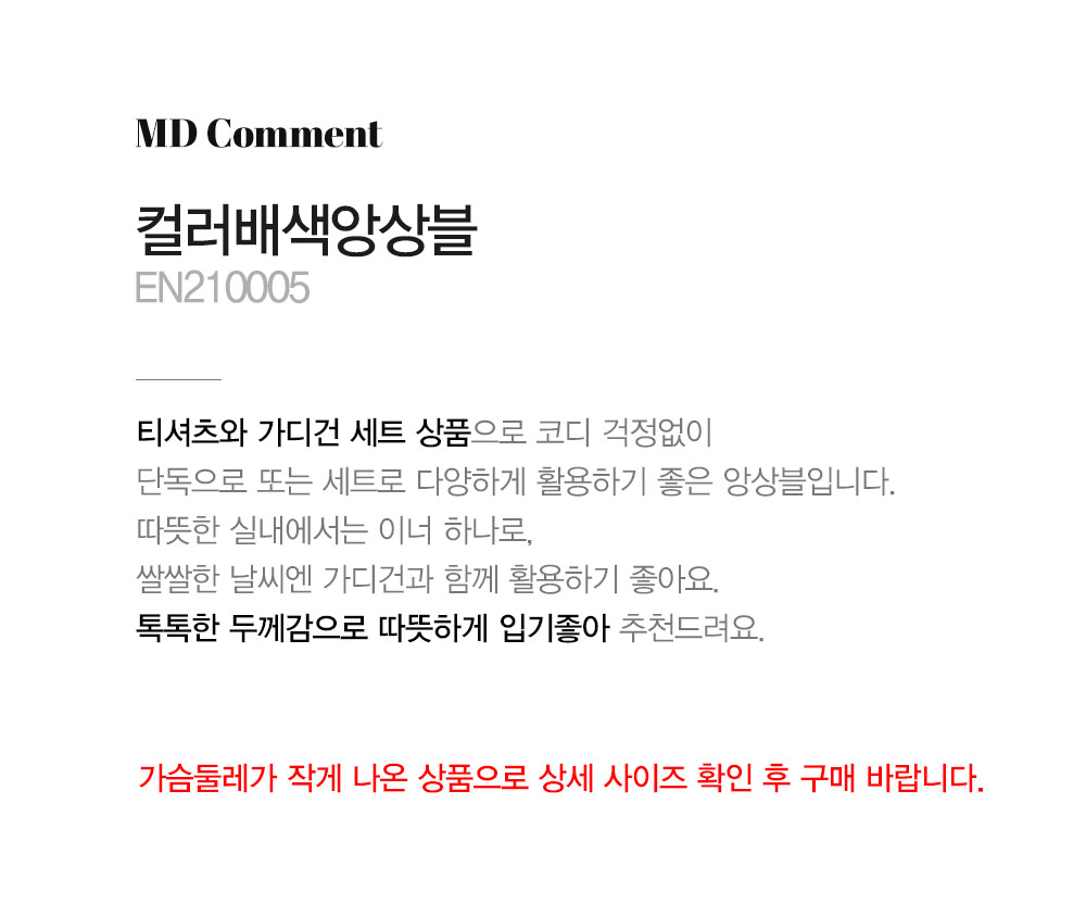 - 가슴둘레가 작게 나온 상품으로