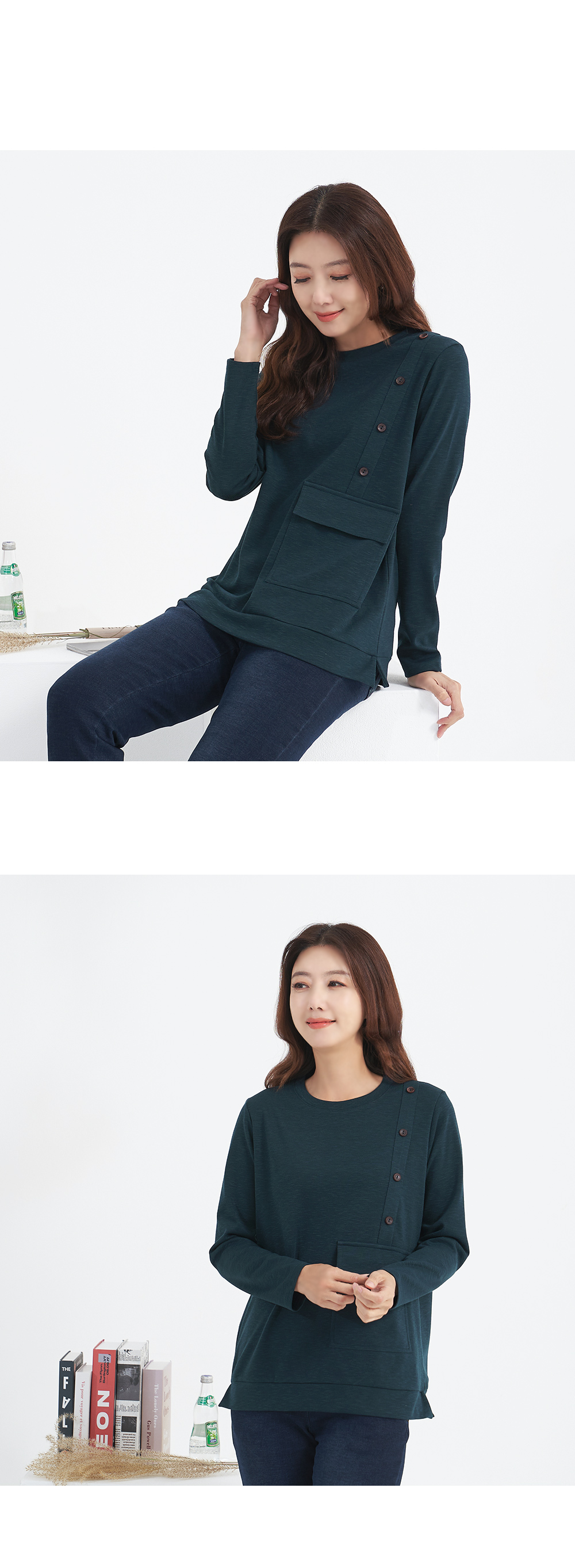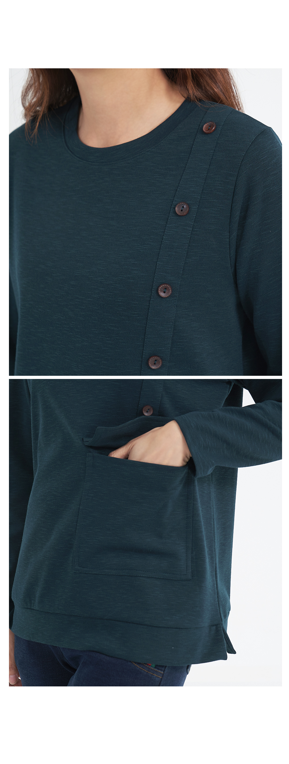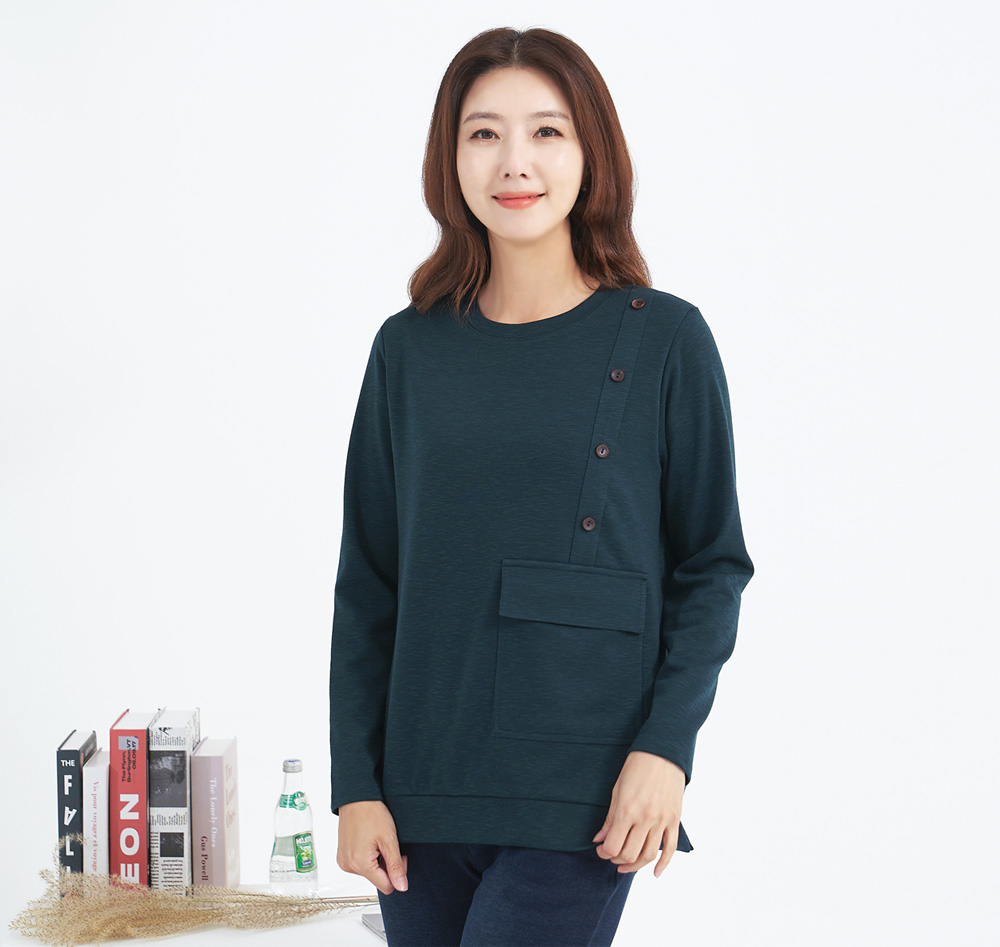 • Diagonal Button Pocket T-shirt-TE210101-