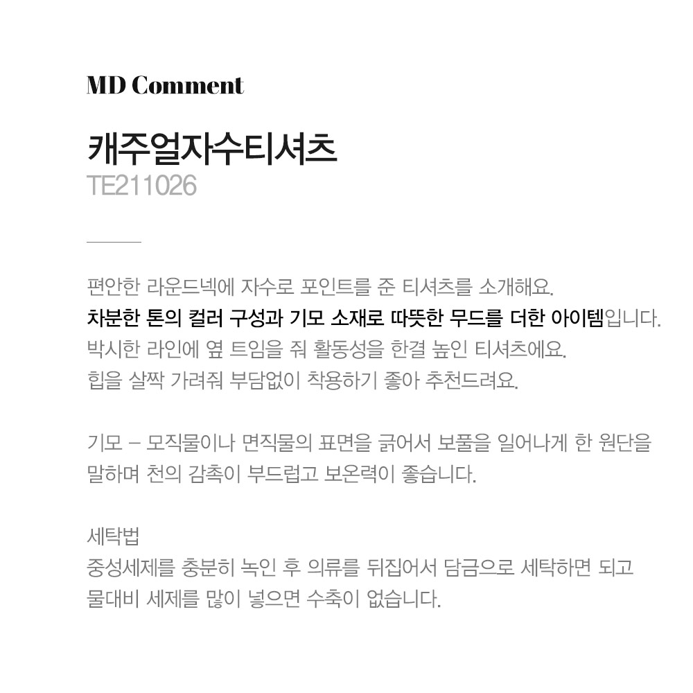 마담4060의 모든 의류 제품은 처음 1~2회 드라이크리닝을 권장합니다.