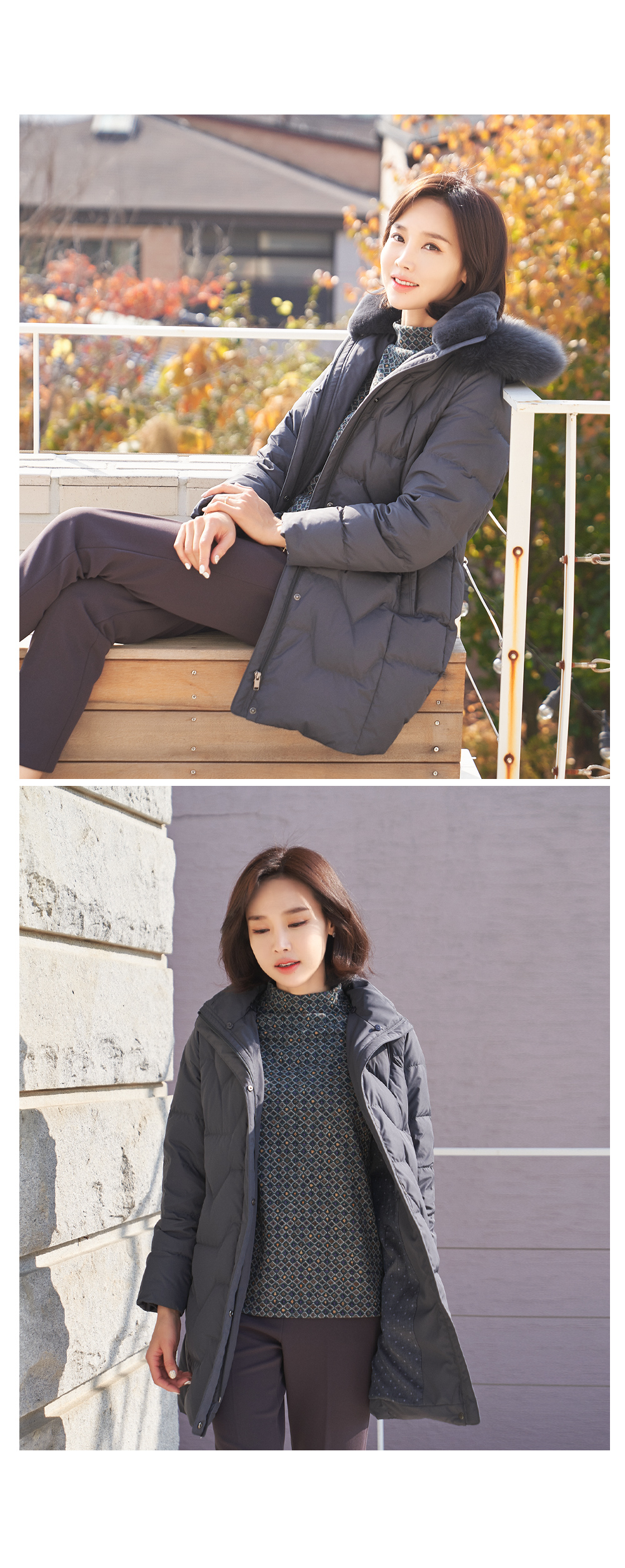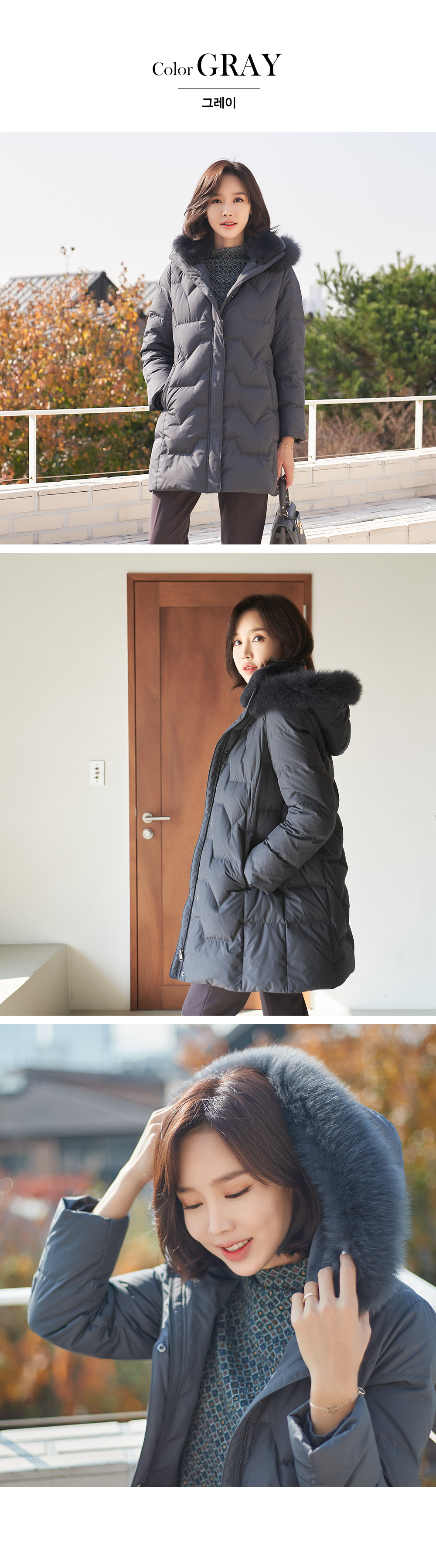 소재 폴리에스터100%,충전재:거위솜털80%,거위깃털20%,FUR:폭스퍼100%,렉스퍼100%