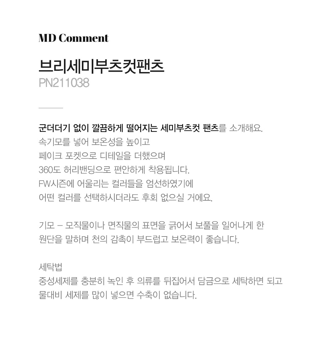 마담4060의 모든 의류 제품은 처음 1~2회 드라이크리닝을 권장합니다.