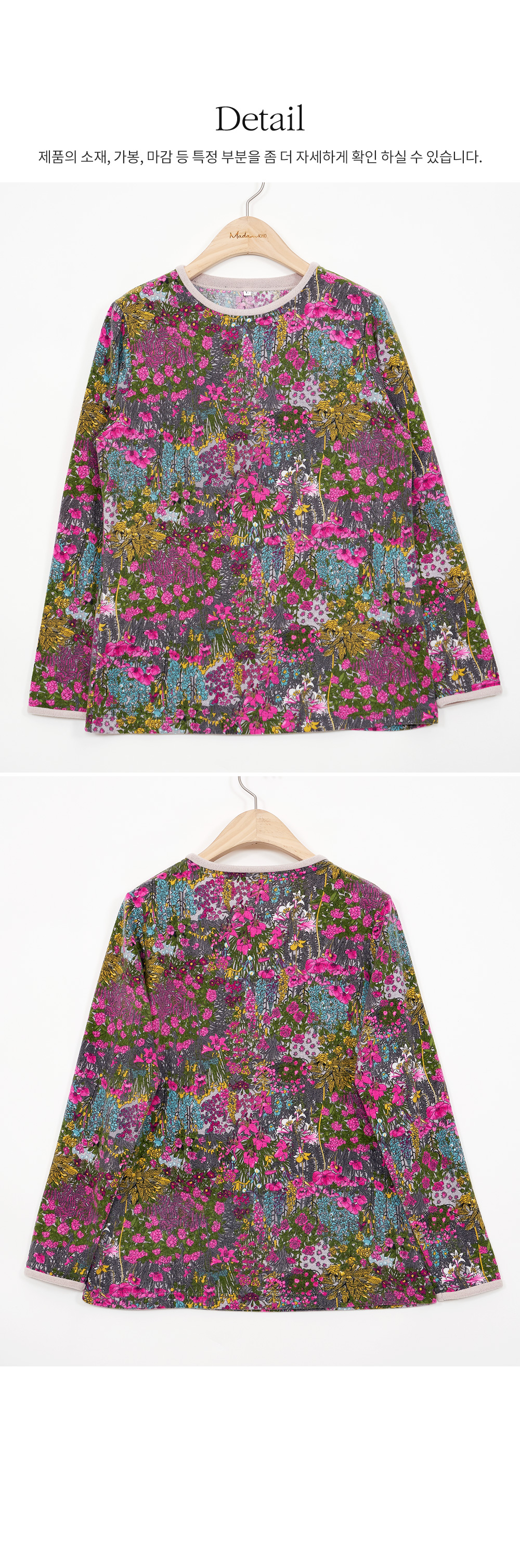 마담4060의 모든 의류 제품은 처음 1~2회 드라이크리닝을 권장합니다.