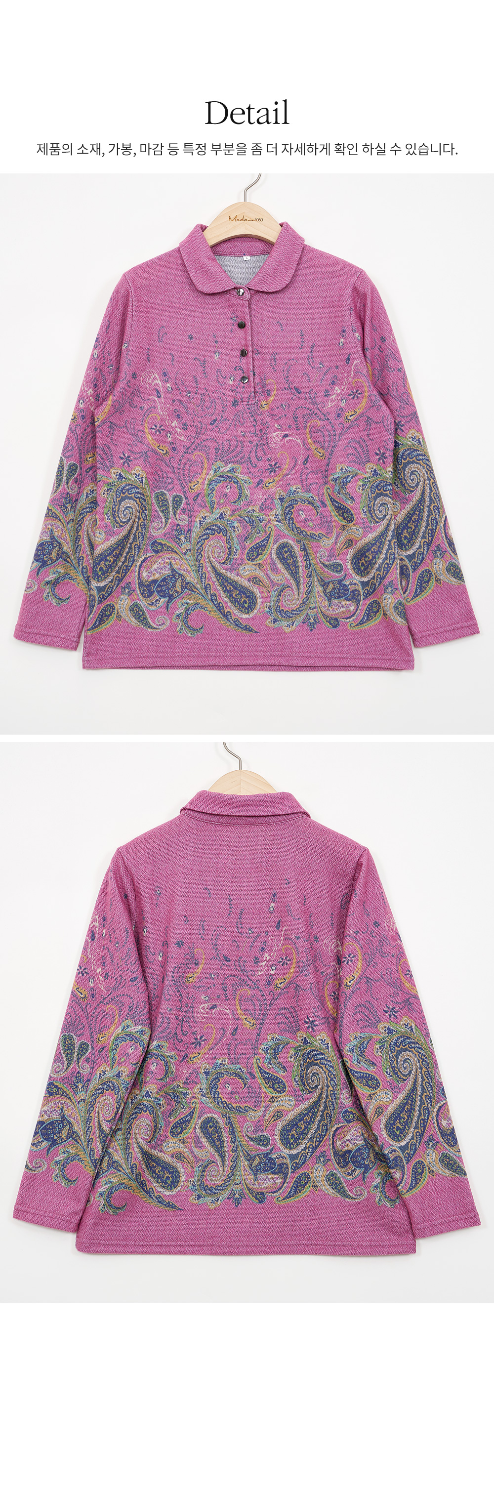마담4060의 모든 의류 제품은 처음 1~2회 드라이크리닝을 권장합니다.