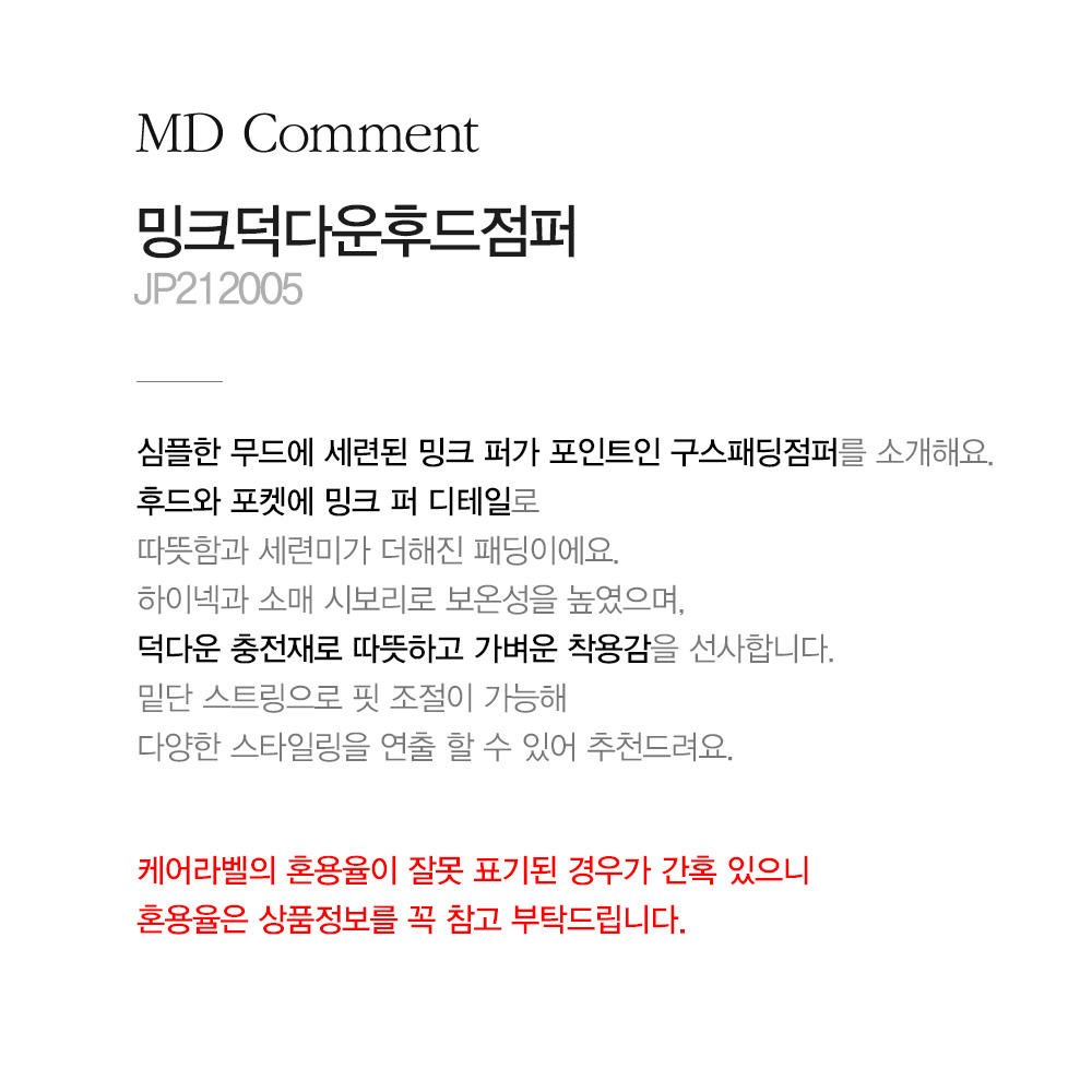 - 케어라벨의 혼용율이 잘못 표기된 경우가 간혹 있으니 혼용율은 상품정보를 꼭 참고 부탁드립니다.