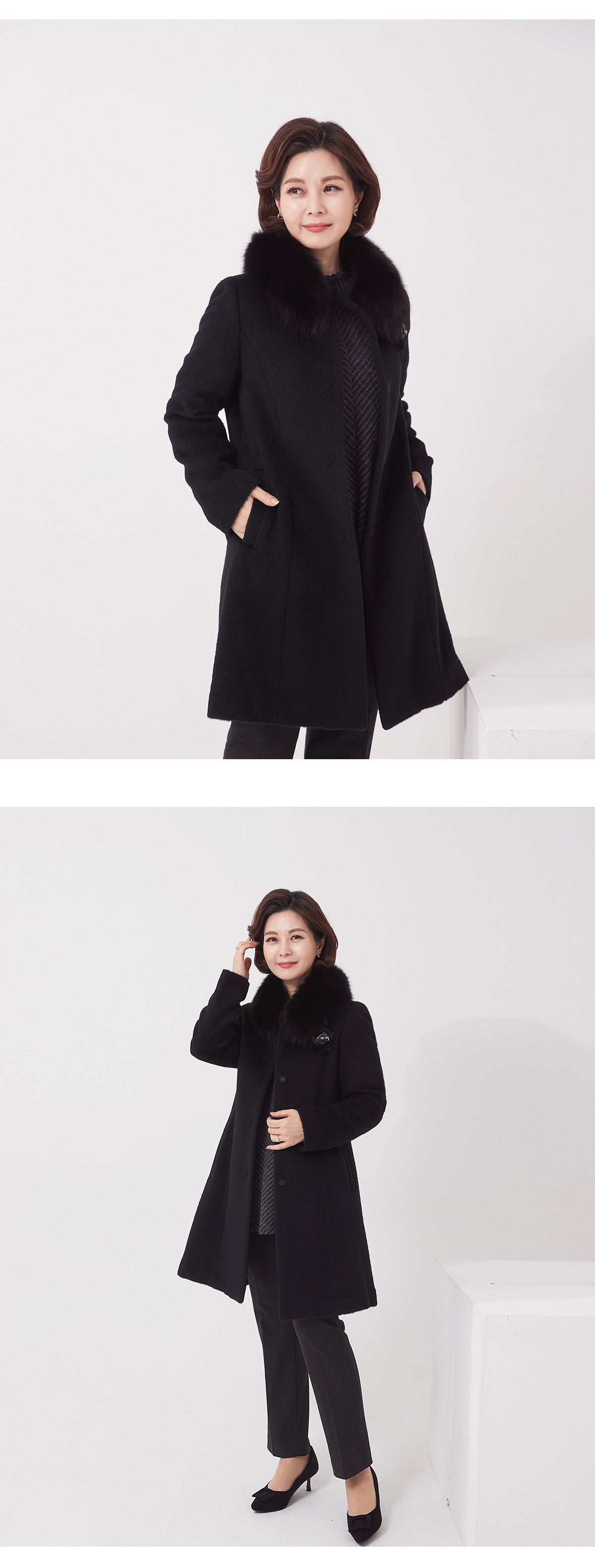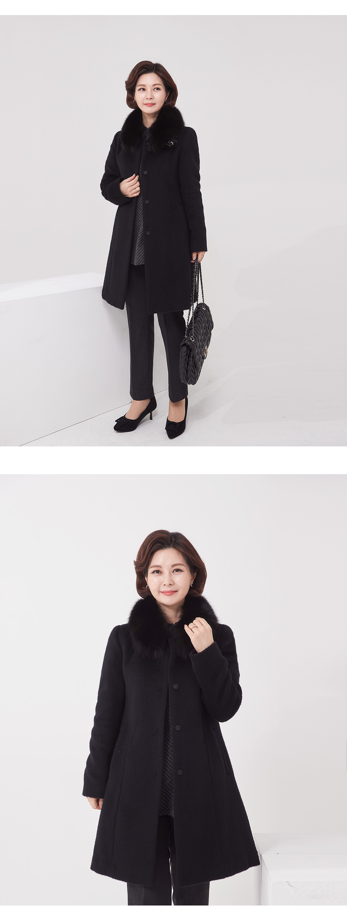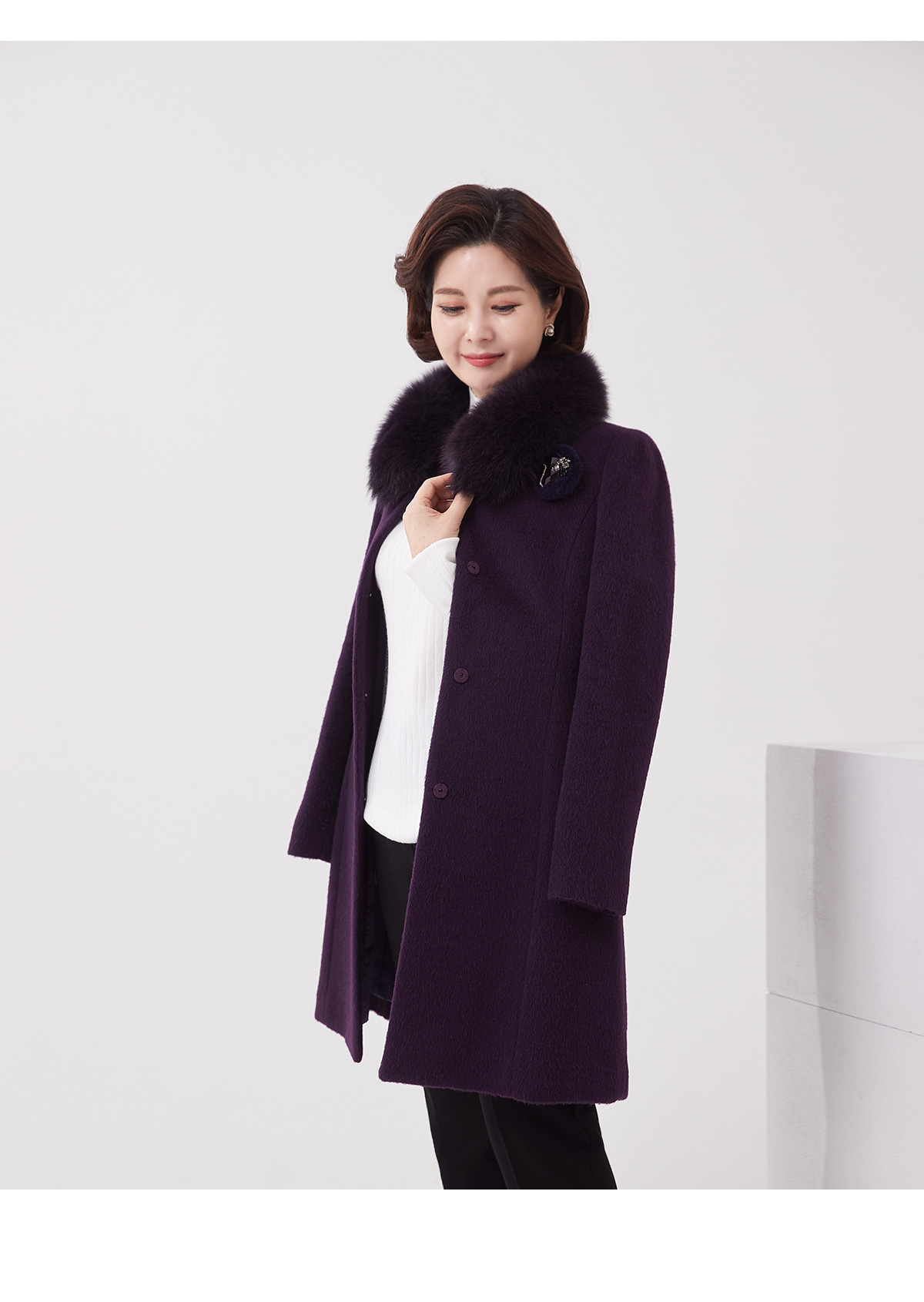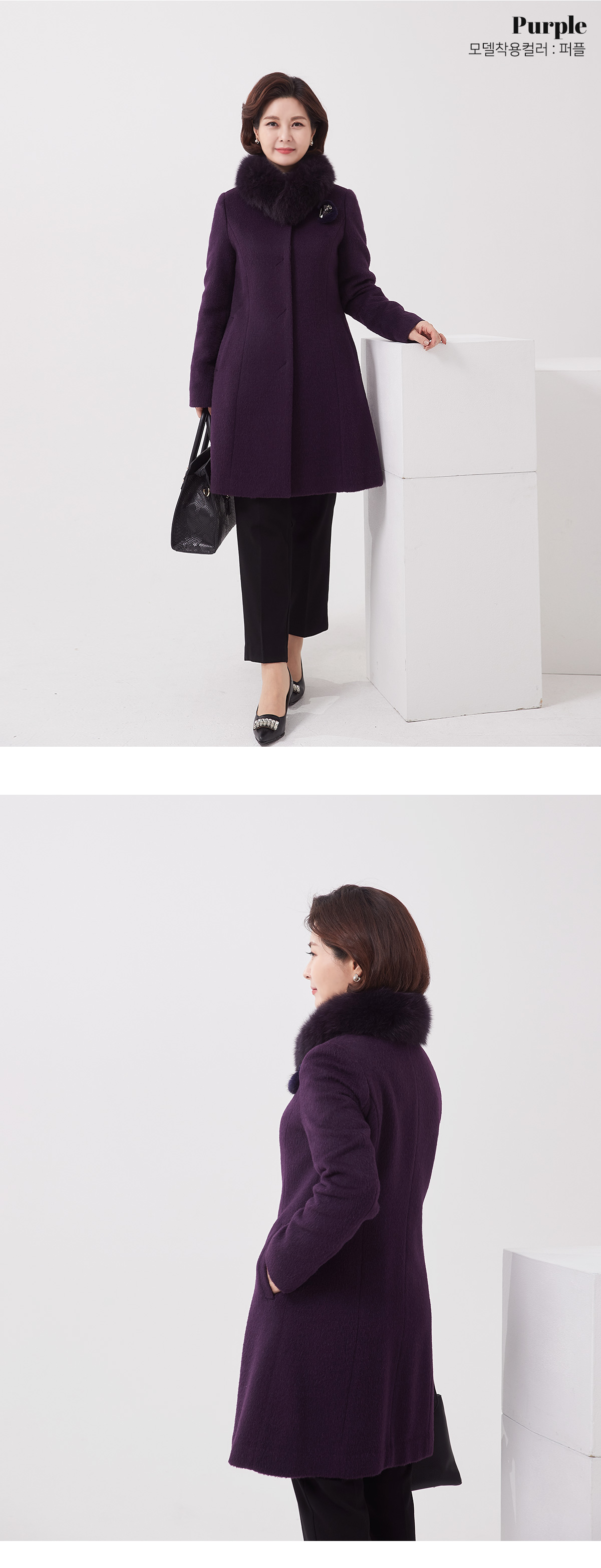 소재 울55%,수리알파카30%,앙고라10%,나일론5%(퍼:폭스) 무게:1190g