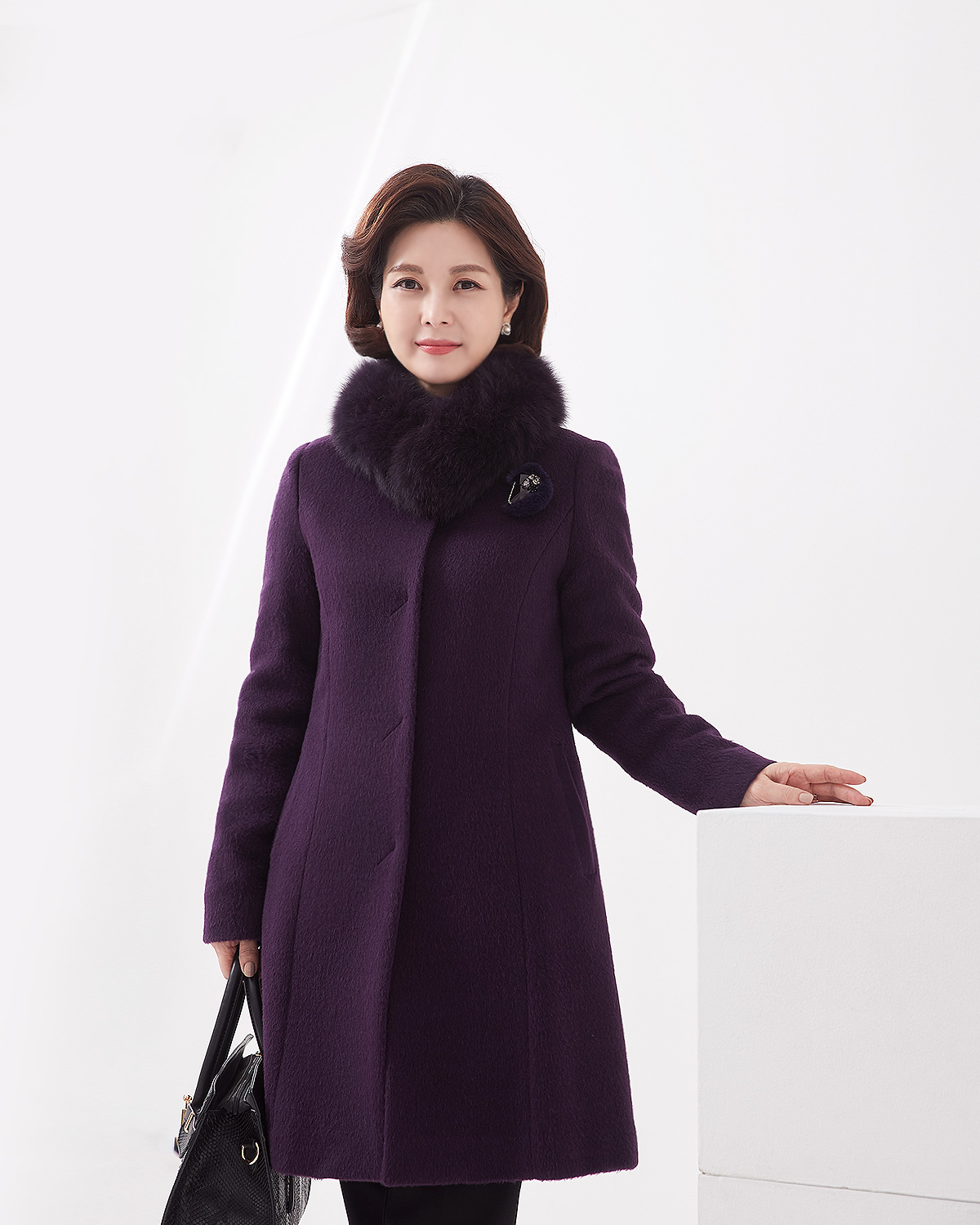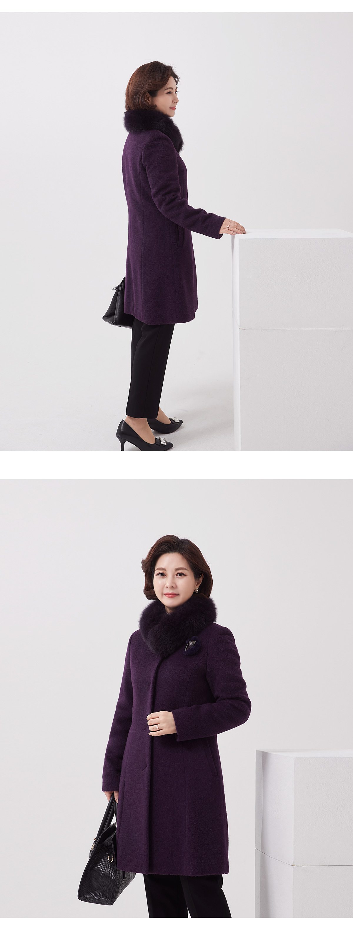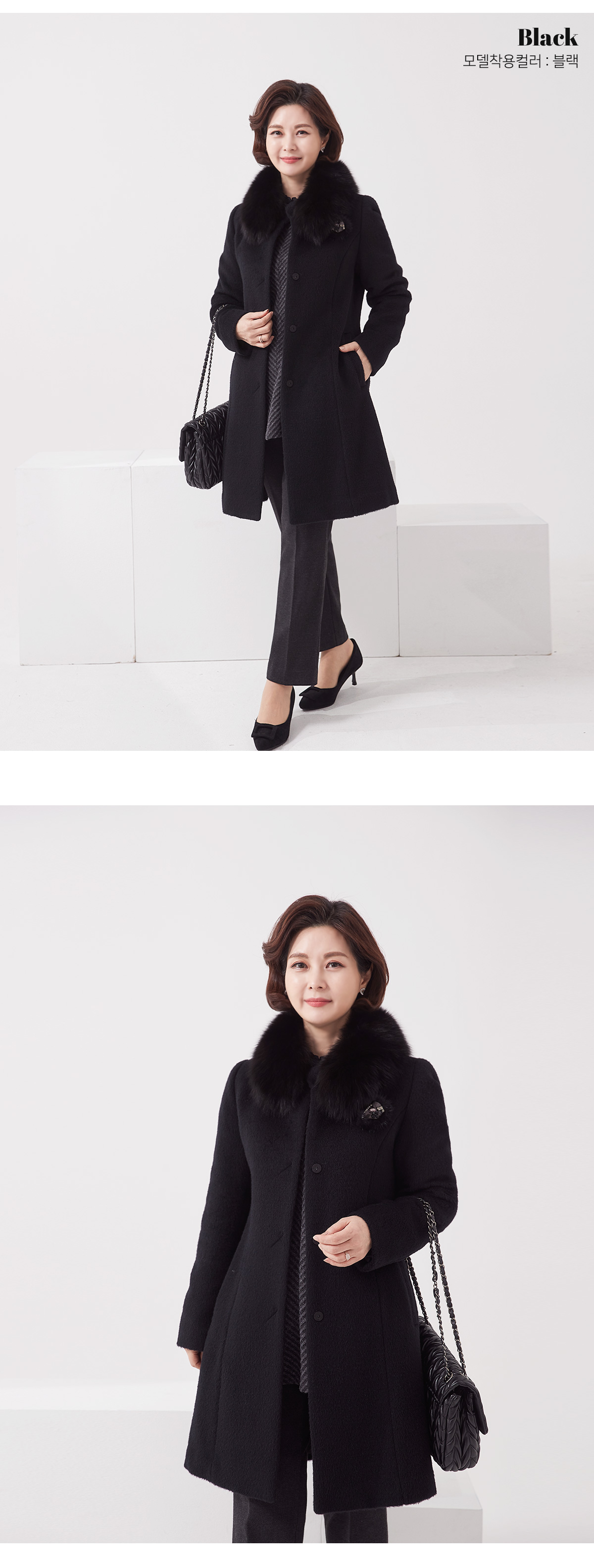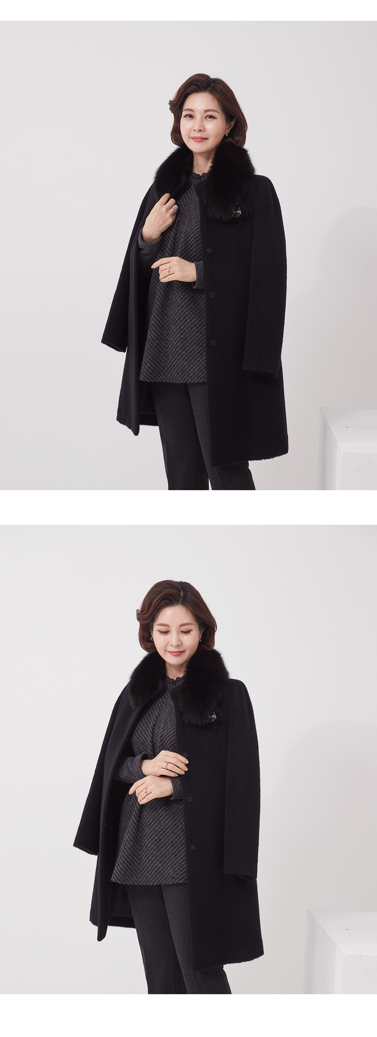 소재 울55%,수리알파카30%,앙고라10%,나일론5%(퍼:폭스) 무게:1190g