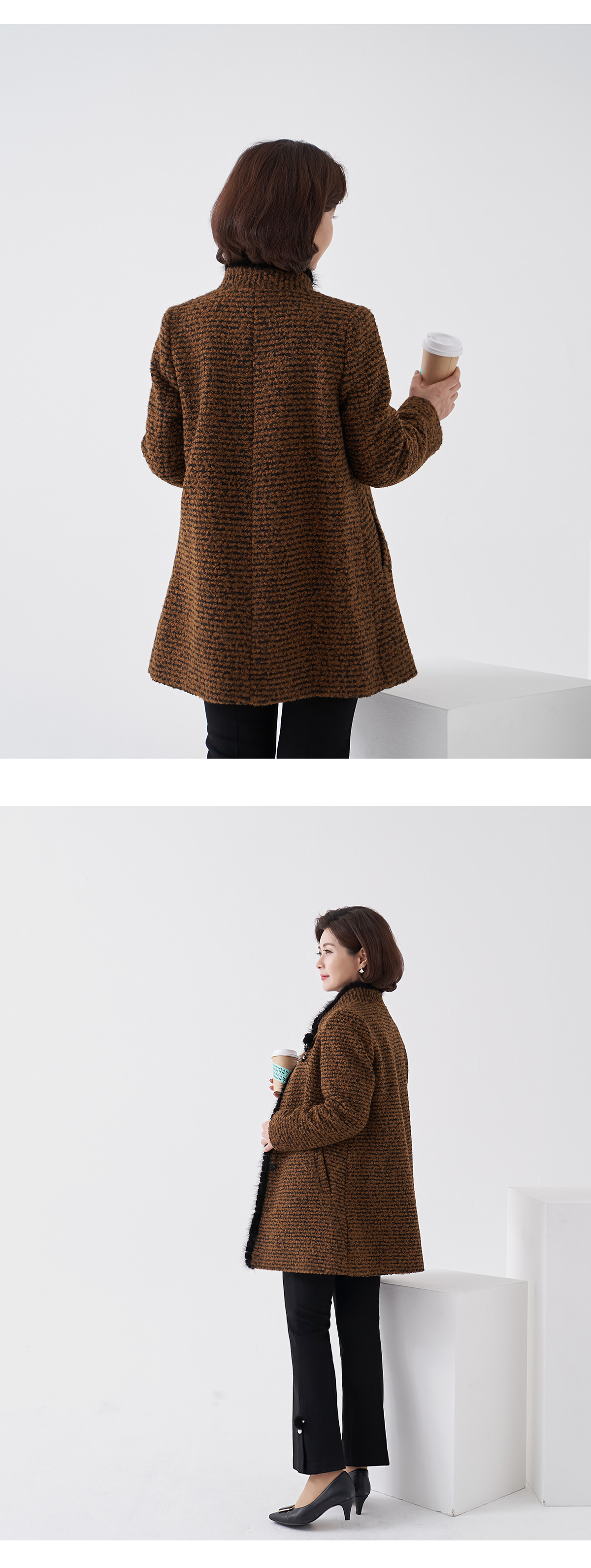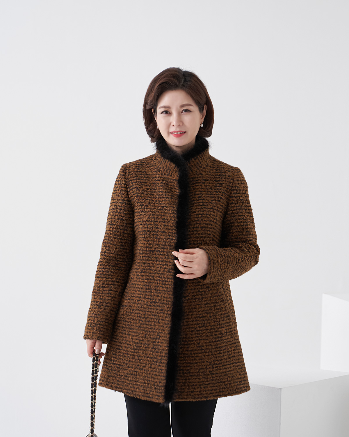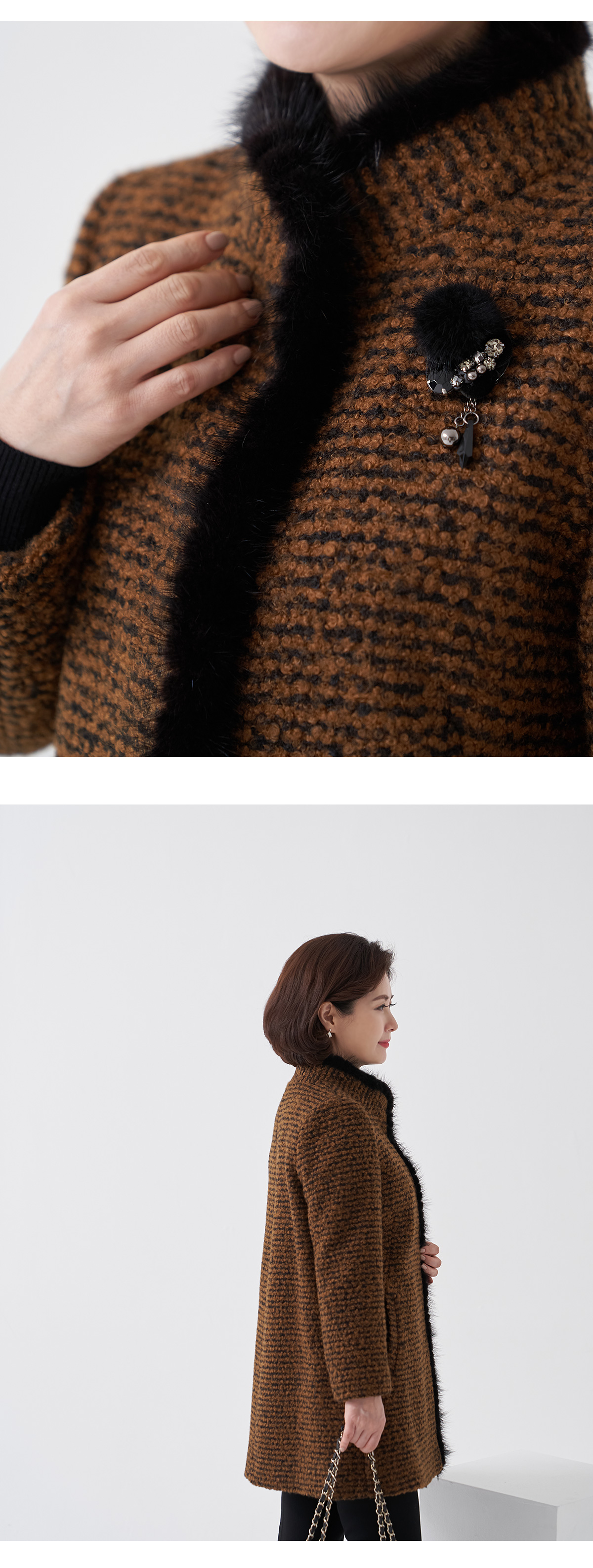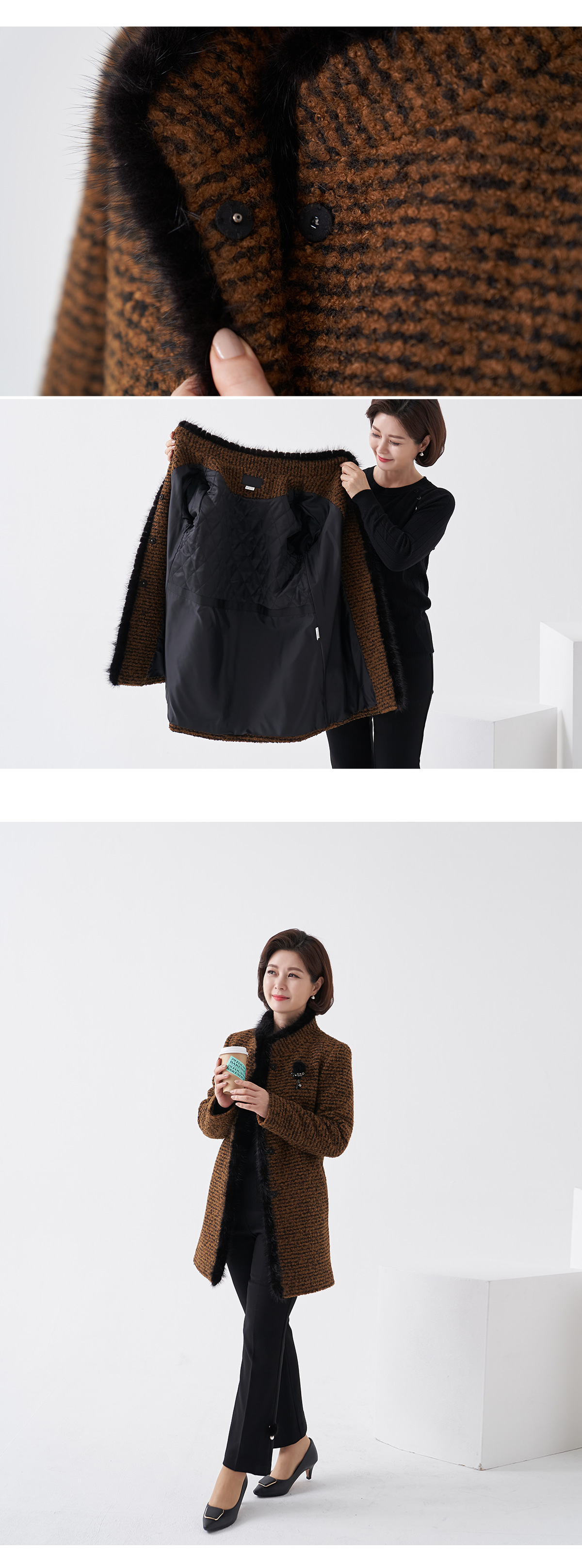 소재 폴리에스터54%,나일론23%,아크릴23% 누빔 충전재:저데니아 2온스, 트리밍&브로치방울:리얼밍크, 무게:1050g