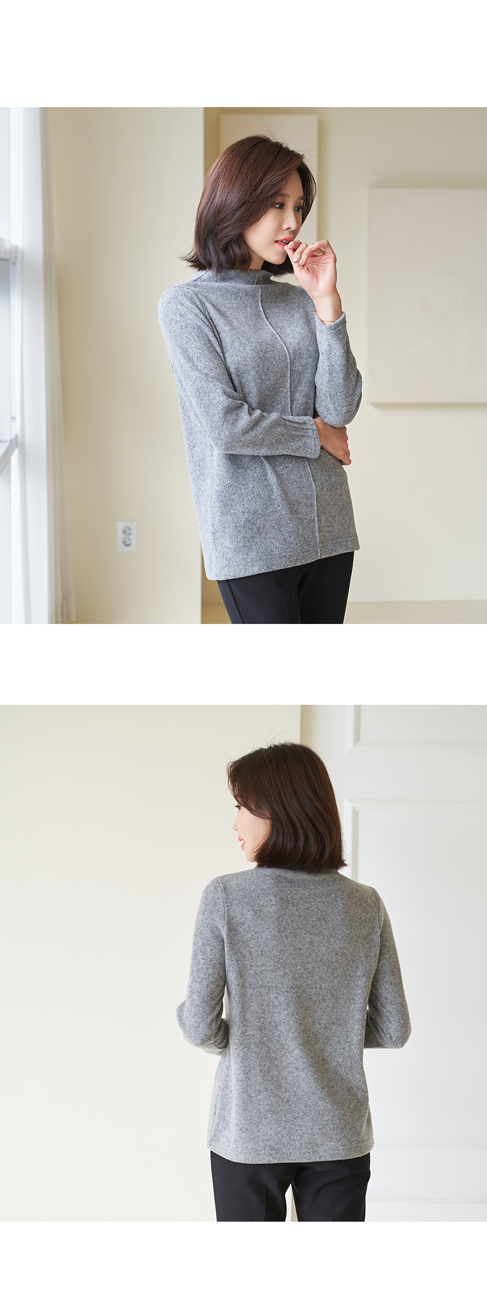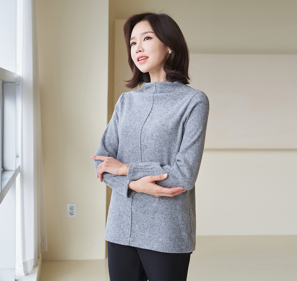 • Pintuck Half Neck T-shirt-TE301007-