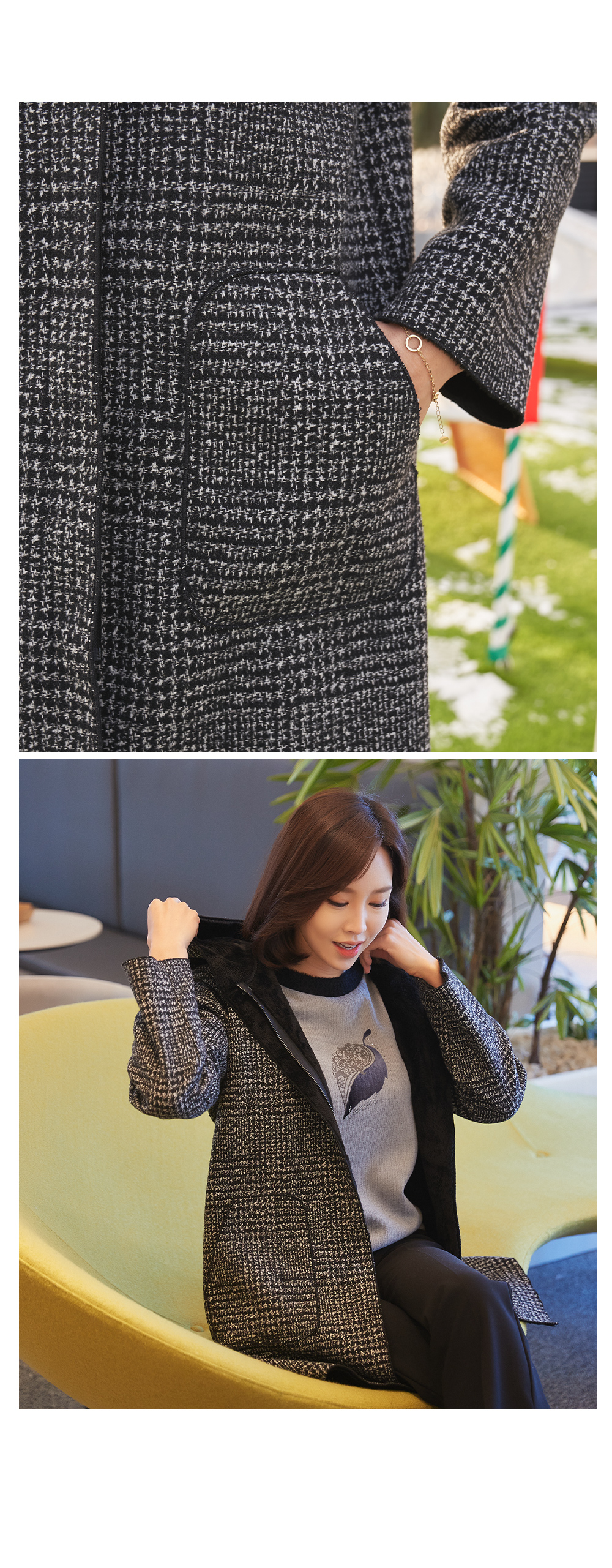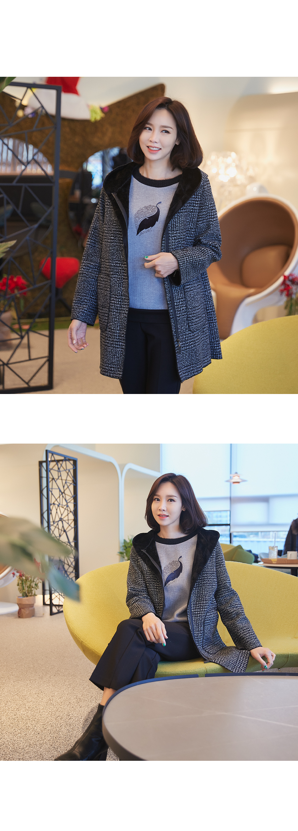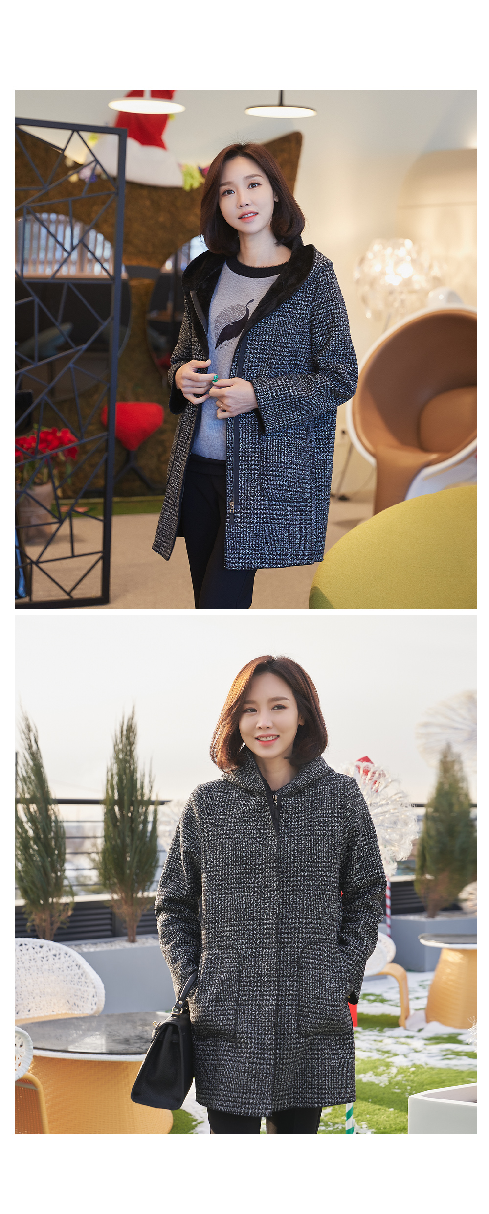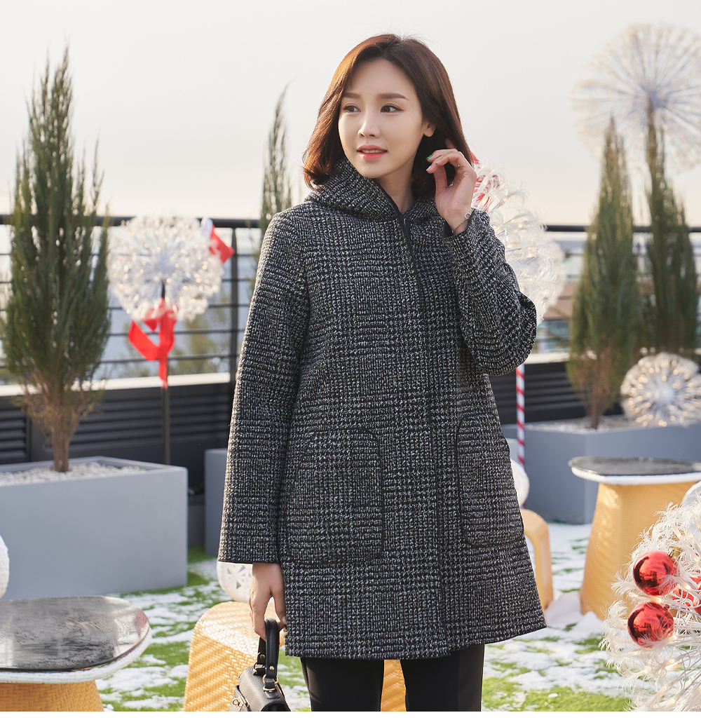 • Warm check hooded coat-CO301012-