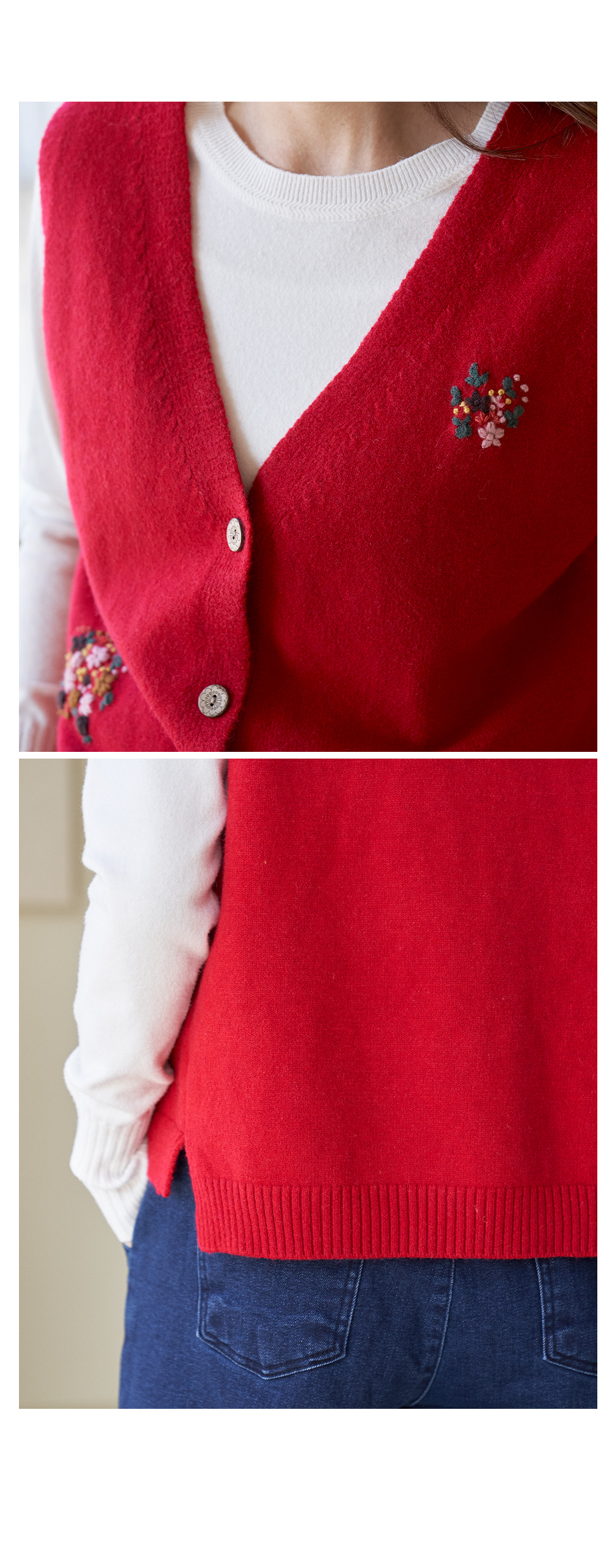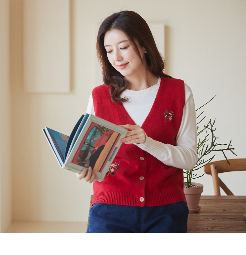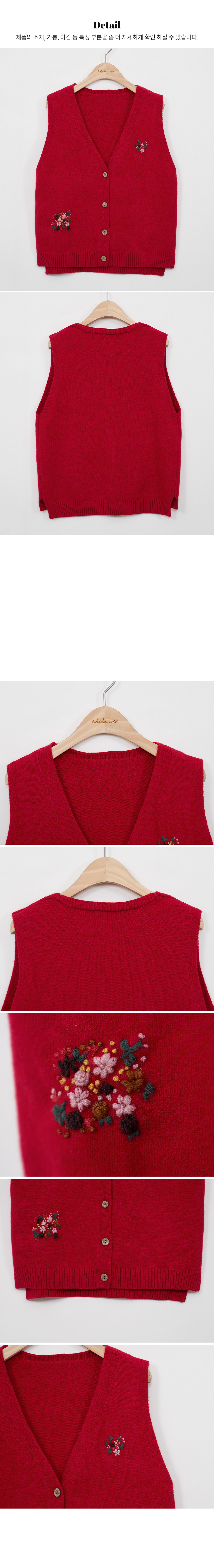 • V-neck flower embroidery knit vest-VE301003-