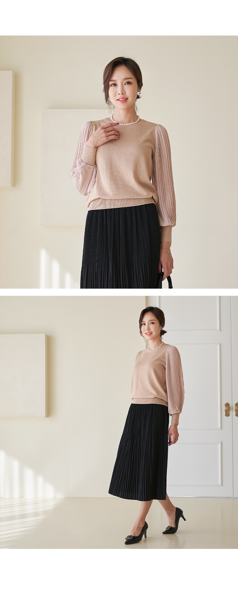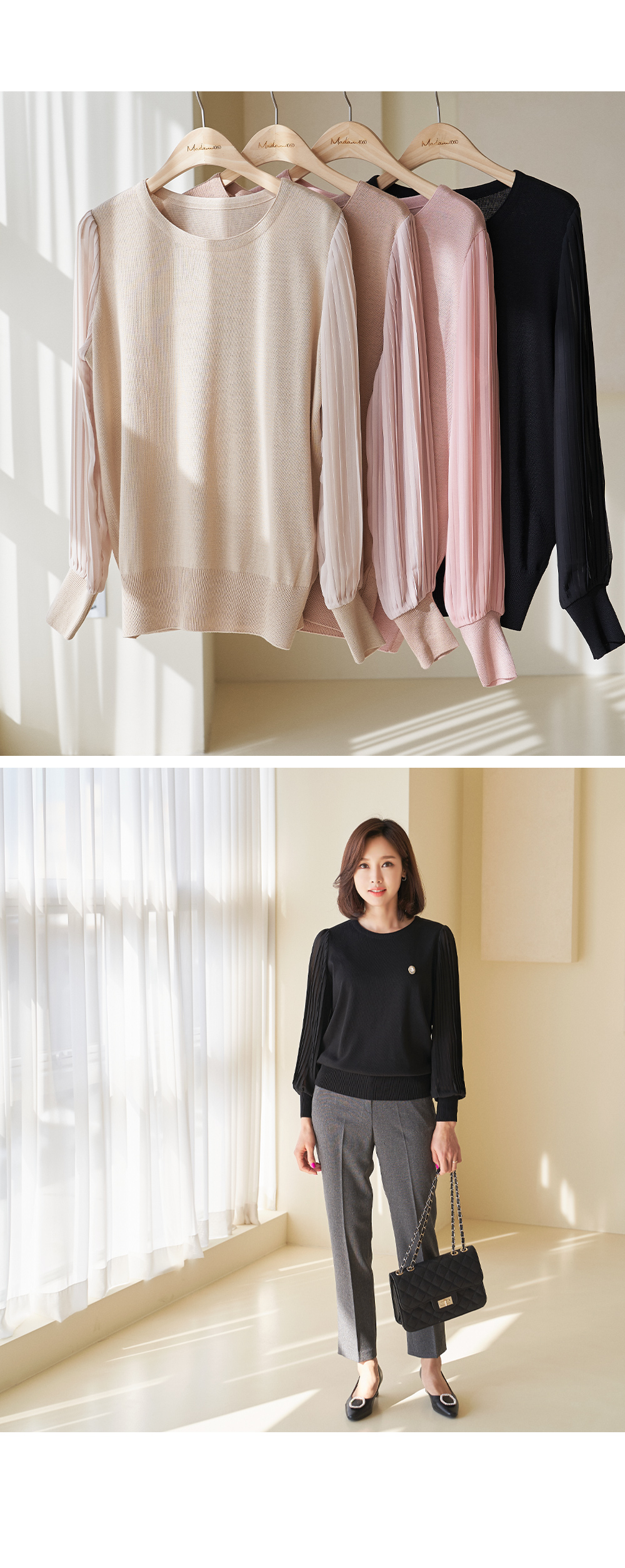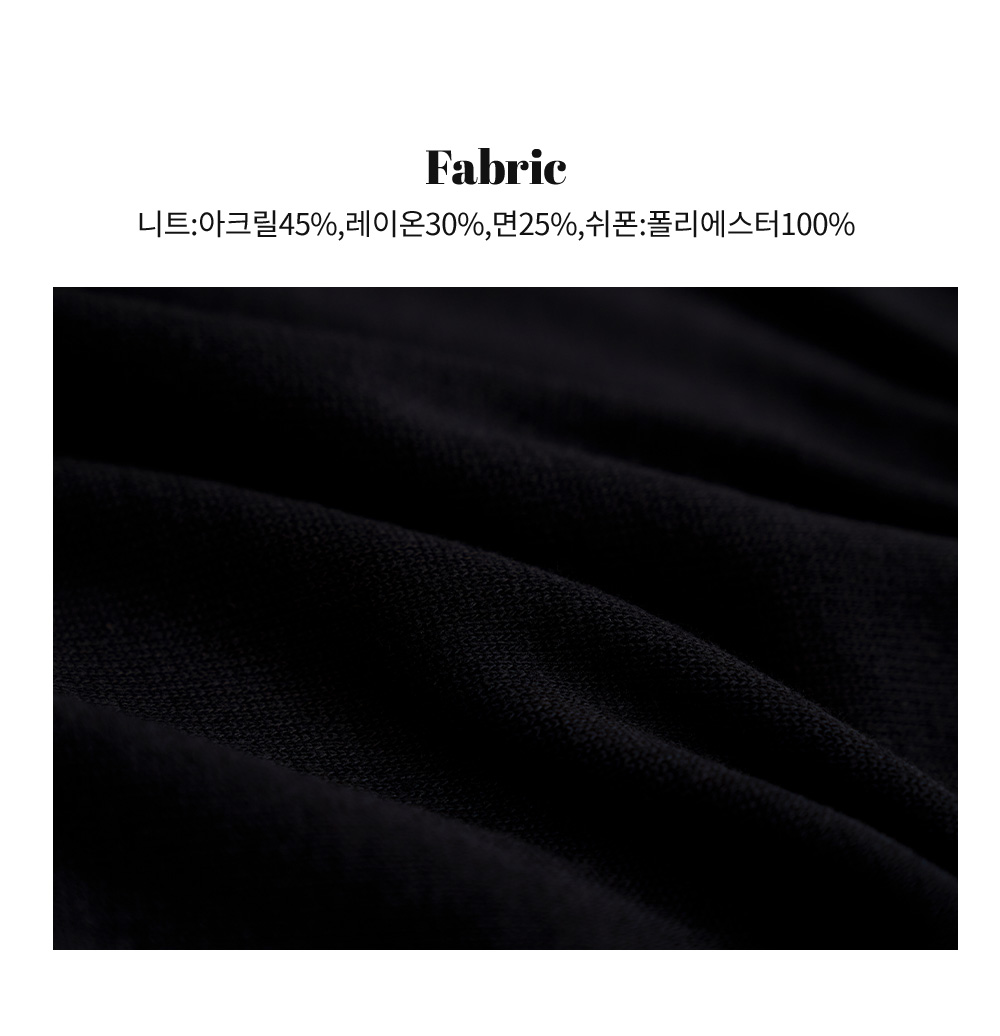소재 니트:아크릴45%,레이온30%,면25%,쉬폰:폴리에스터100%