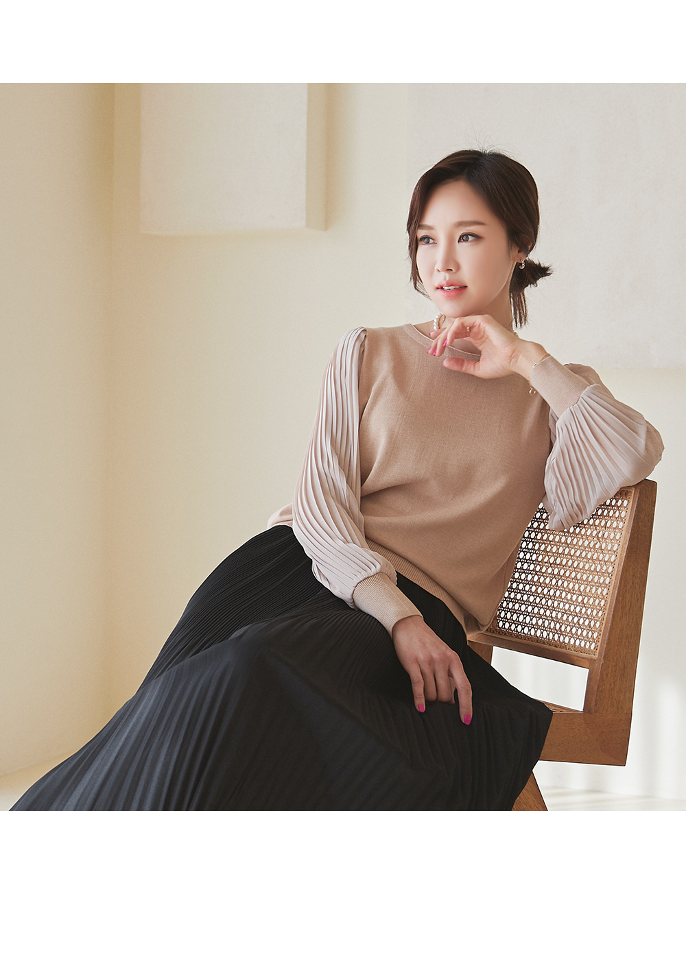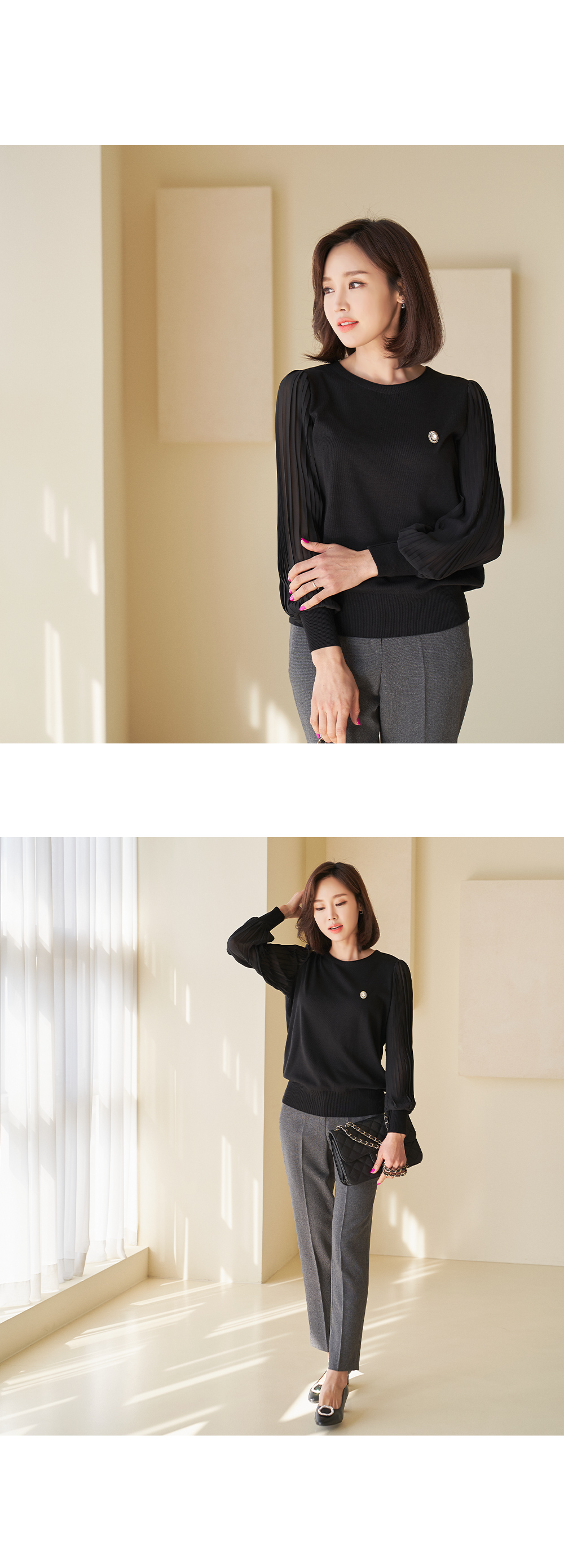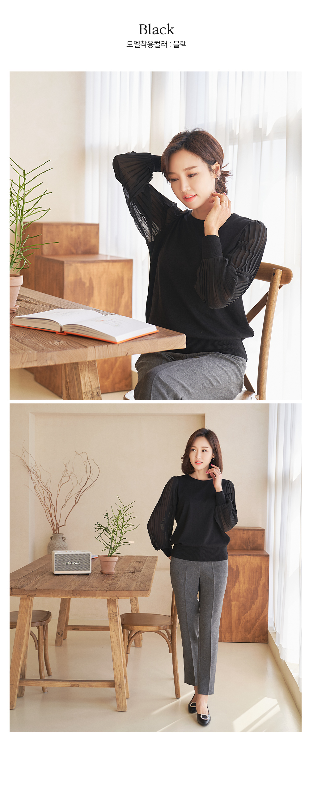 소재 니트:아크릴45%,레이온30%,면25%,쉬폰:폴리에스터100%