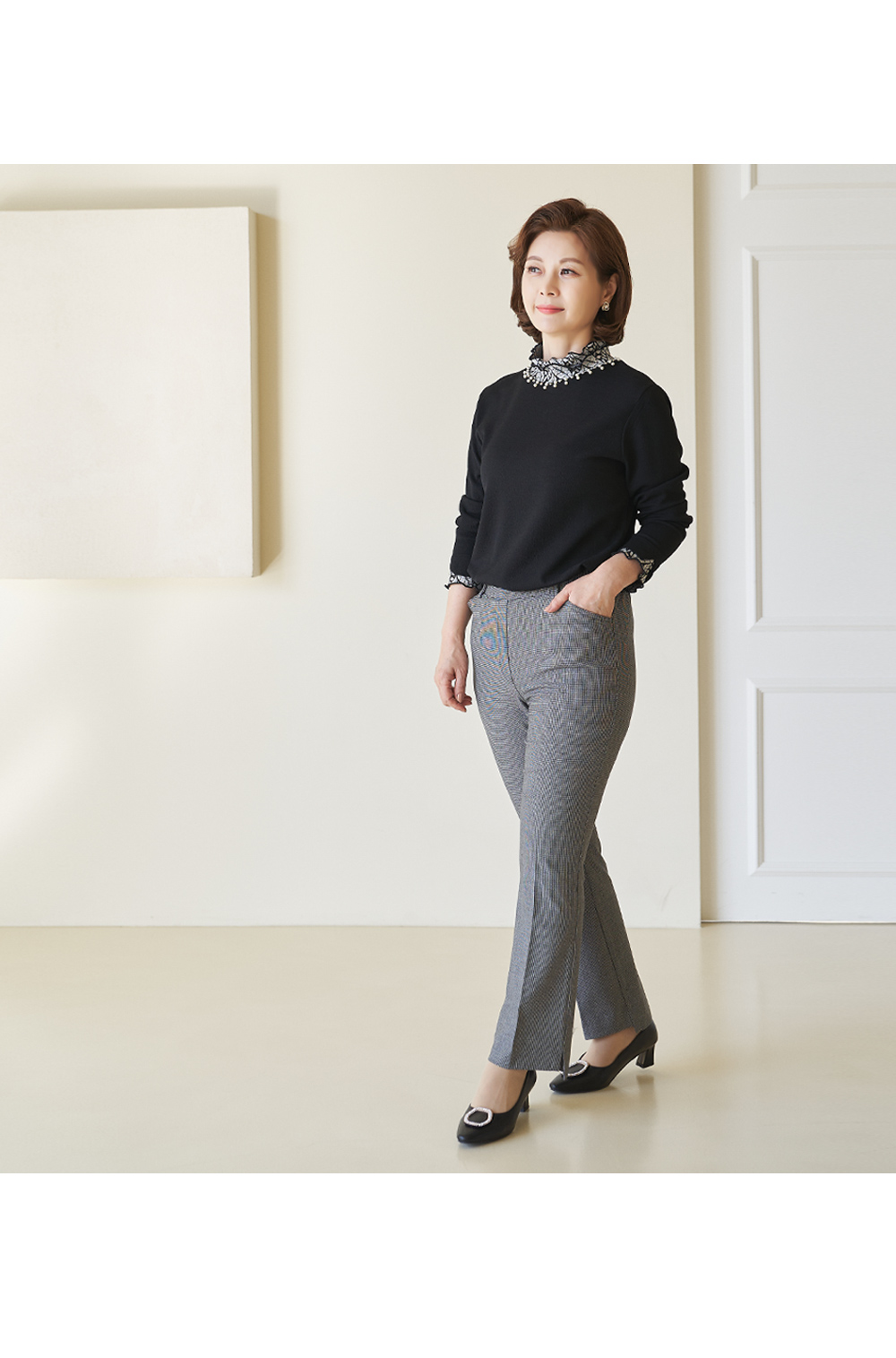 • Modern check slit pants-PN301049-