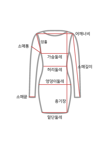 사이즈 총장 어깨 가슴(단면) 소매길이 암홀(단면) 소매통(단면) 소매단(단면) 밑단(단면)