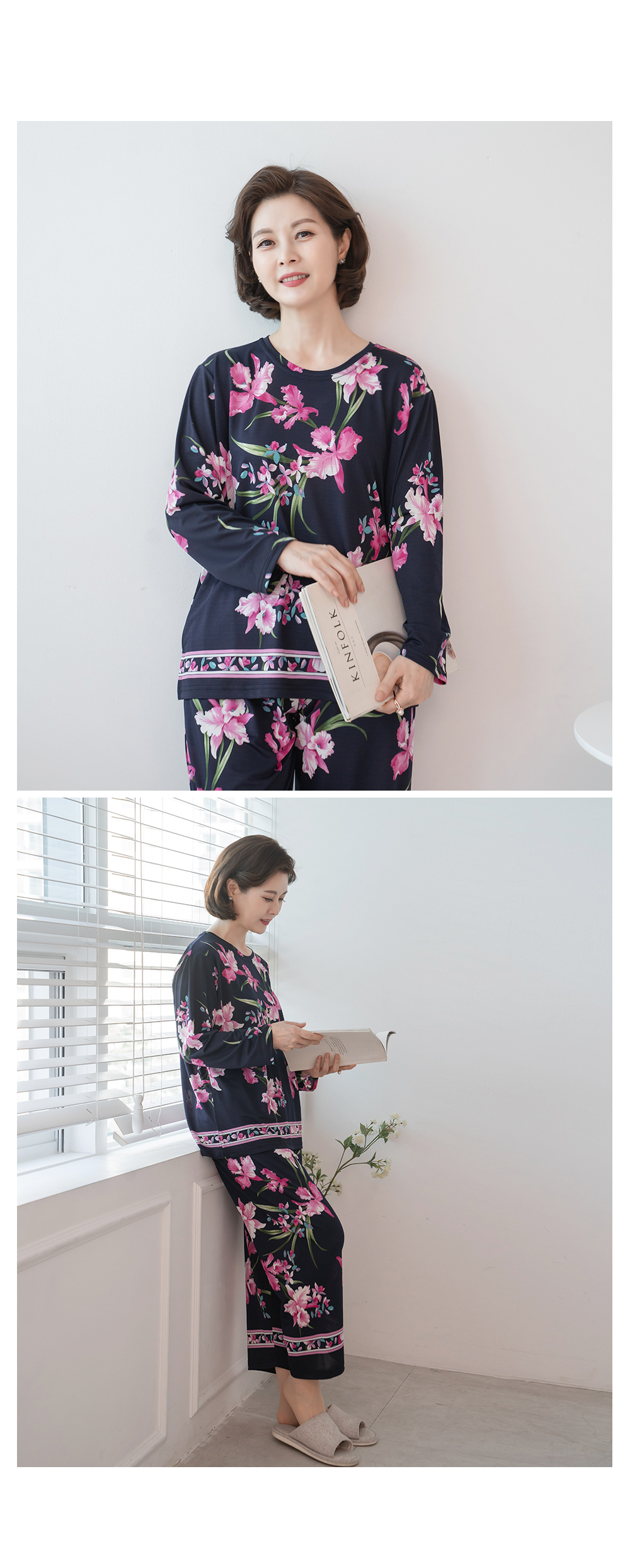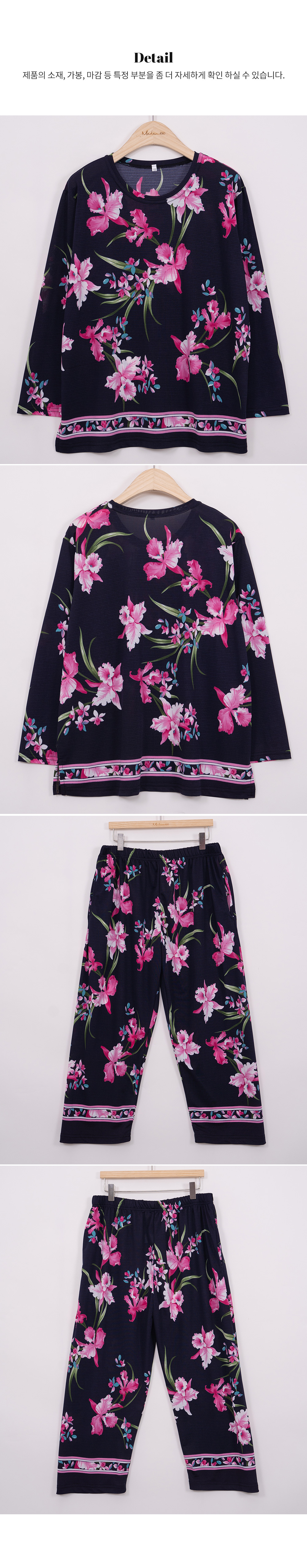 사이즈 총장(상/하) 총장(상/하) 가슴(단면)/엉덩이(단면) 소매길이(단면)/밑위(단면) 암홀(단면)/허벅지(단면) 소매통(단면) 소매단(단면) 밑단(단면)(상/하) 목너비