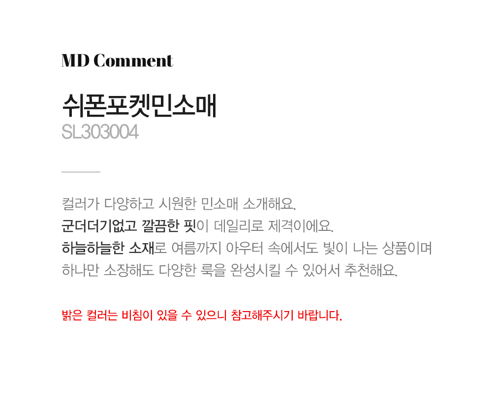 - 밝은 컬러는 비침이 있을 수 있으니 참고해주시기 바랍니다.