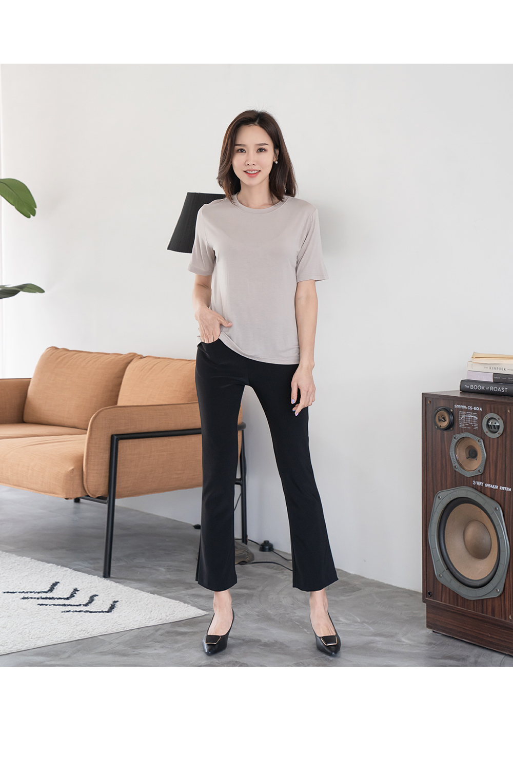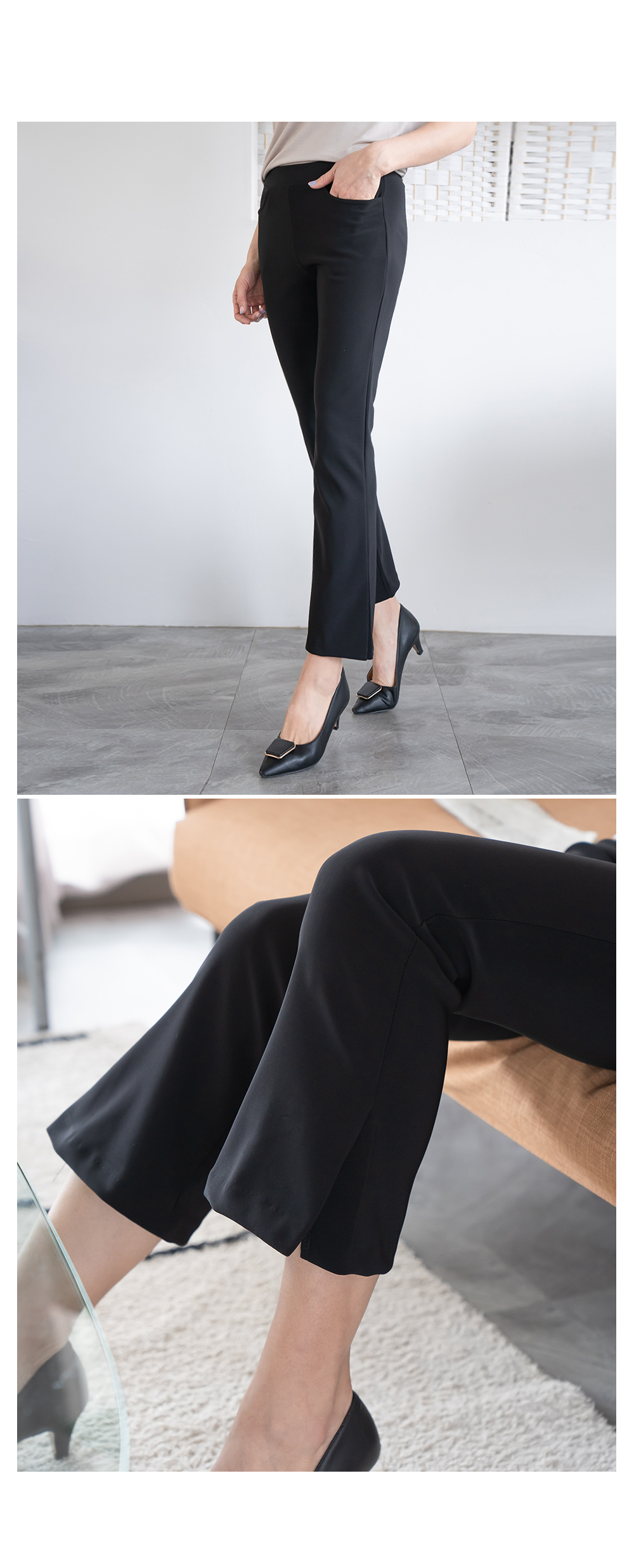 • Elastic boot cut pants-PN303012-