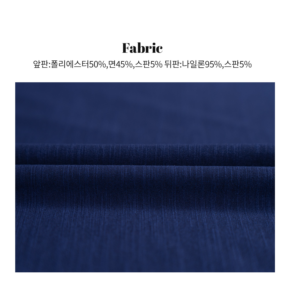 소재 앞판:폴리에스터50%,면45%,스판5% 뒤판:나일론95%,스판5%