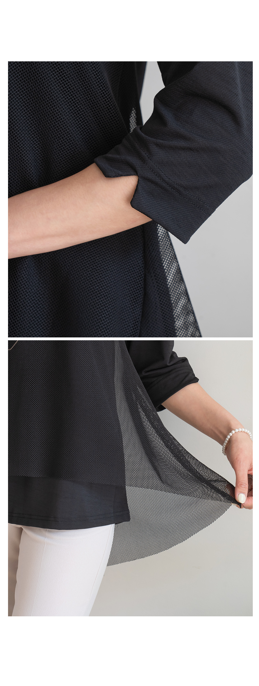 소재 무지:폴리에스터95%,스판5% 망사:폴리에스터90%,스판10%