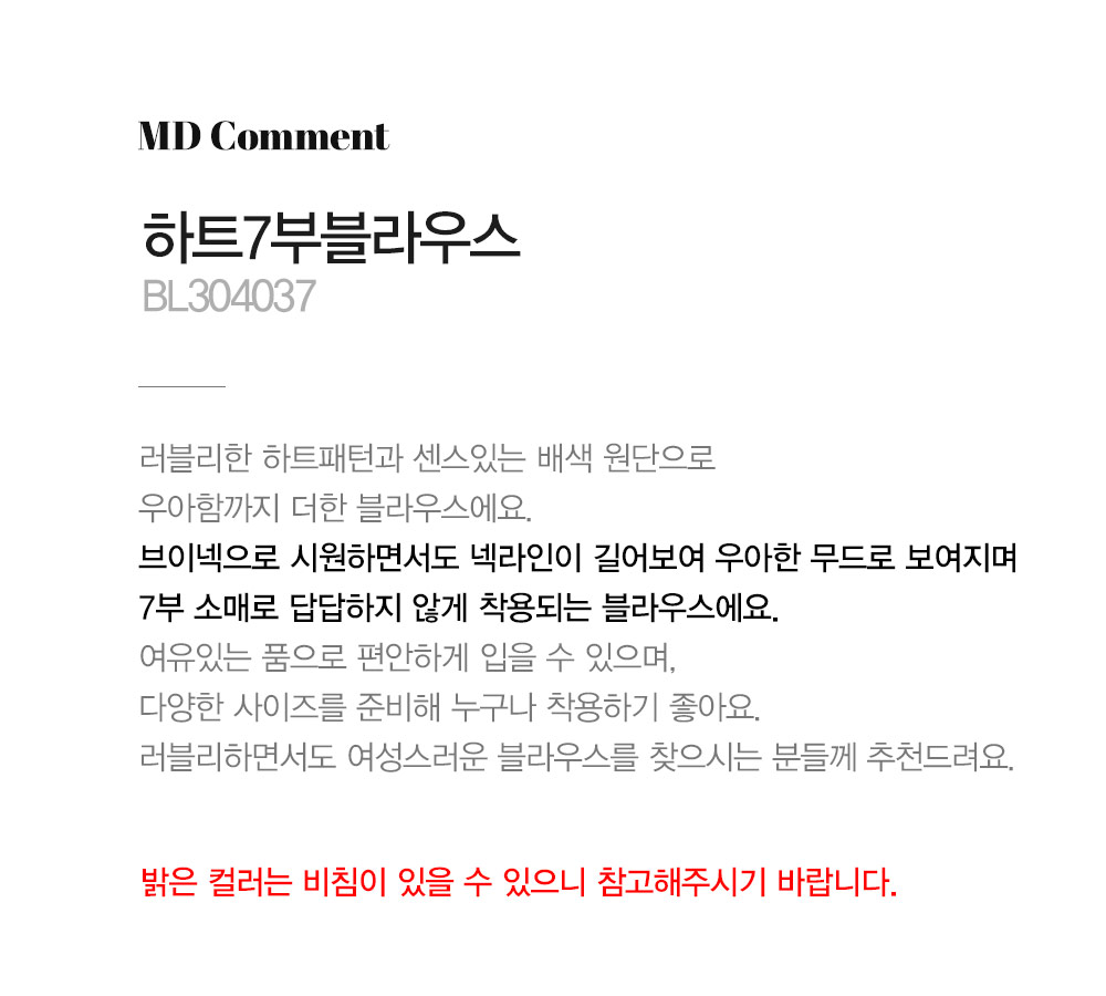 - 밝은 컬러는 비침이 있을 수 있으니 참고해주시기 바랍니다.