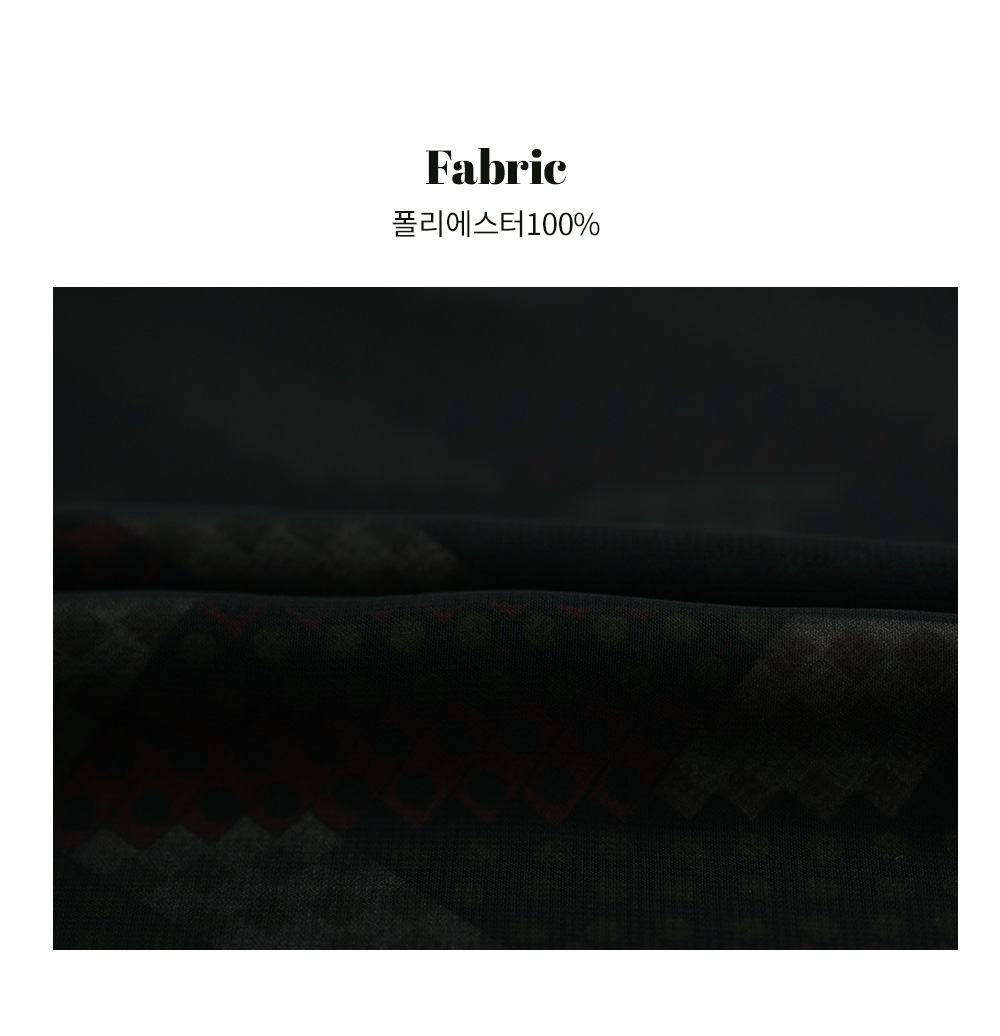 뒷목 단추로 여밈을 하고, 넥라인의 목걸이가 포인트인 아이템이에요.