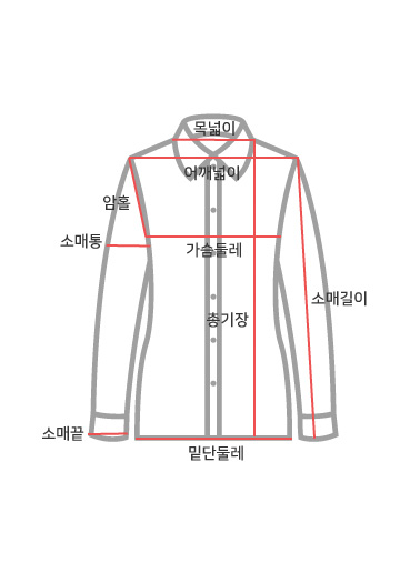 사이즈 총장 가슴(단면) 소매길이(옆목부터) 소매단(단면) 밑단(단면)