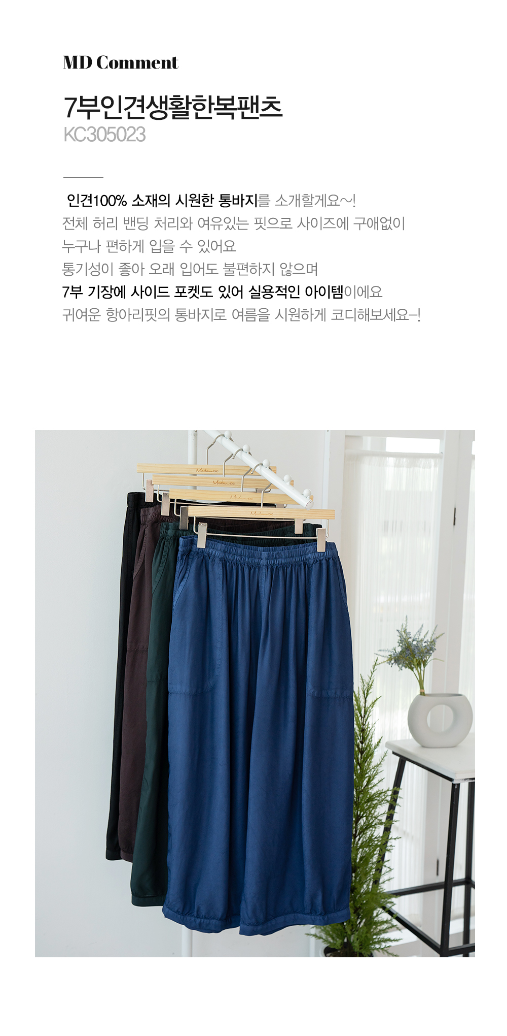 인견 - 펄프에서 추출한 요사로 만든 순수 천연섬유로 가볍고 시원하며 몸에 붙지 않아 통풍성이 좋아 땀띠가 예방되어 여름소재로 많이 활용됩니다.