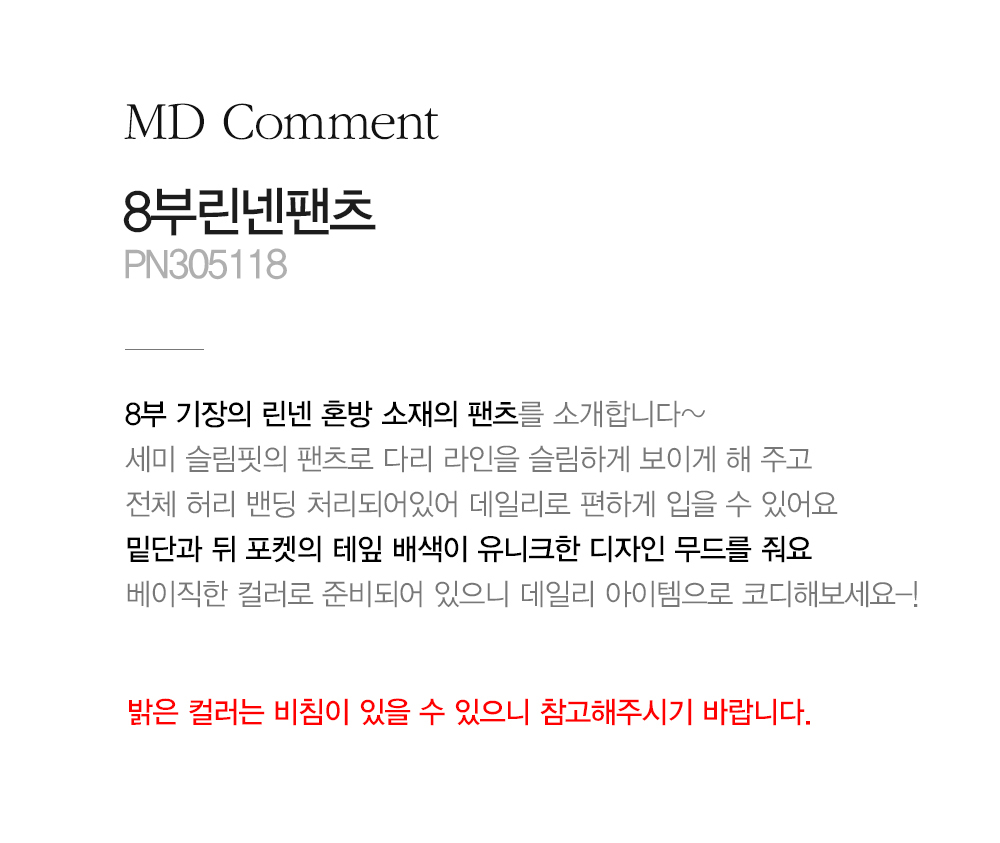 - 밝은 컬러는 비침이 있을 수 있으니 참고해주시기 바랍니다.