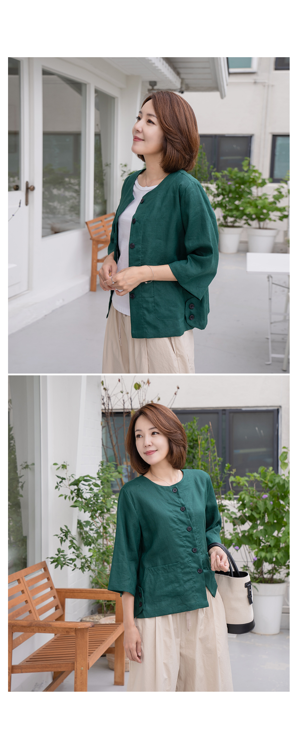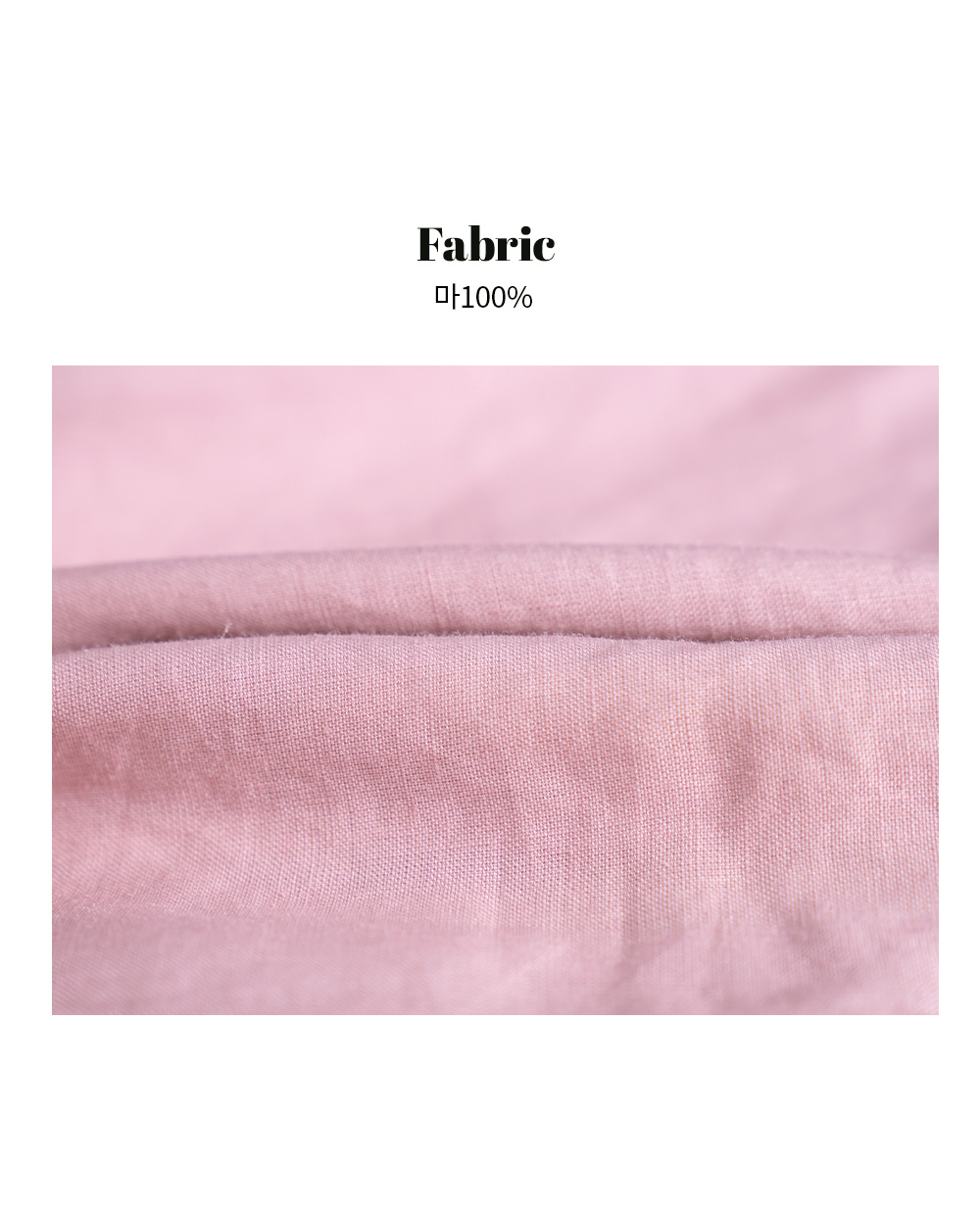 린넨(마) - 아마식물의 줄기에서 얻은 천연섬유로 흡수력과 발산성이 뛰어나며 열을 분산시키고 통기성이 좋아 여름에 땀으로 인해 소재가 몸에 달라붙지 않아 산뜻한 감촉으로 착용하실 수 있습니다.