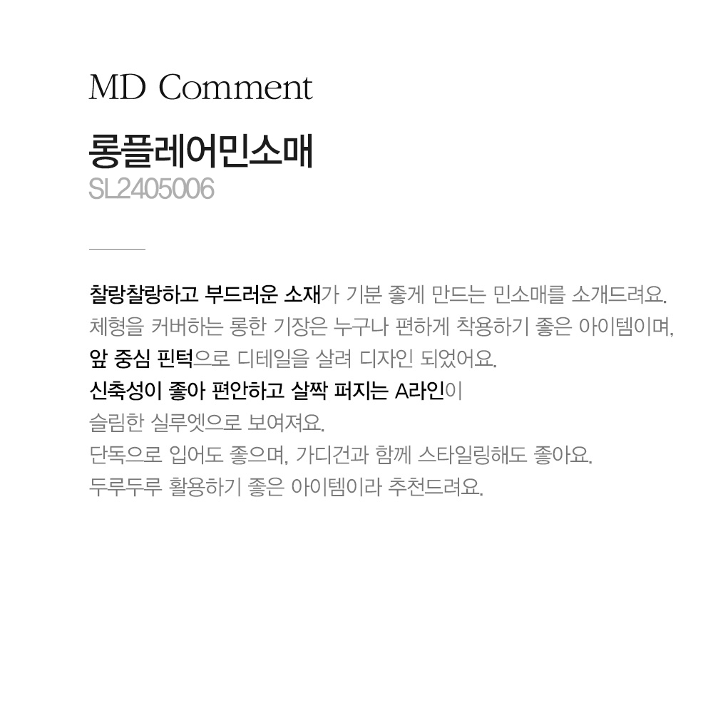 마담4060의 모든 의류 제품은 처음 1~2회 드라이크리닝을 권장합니다.