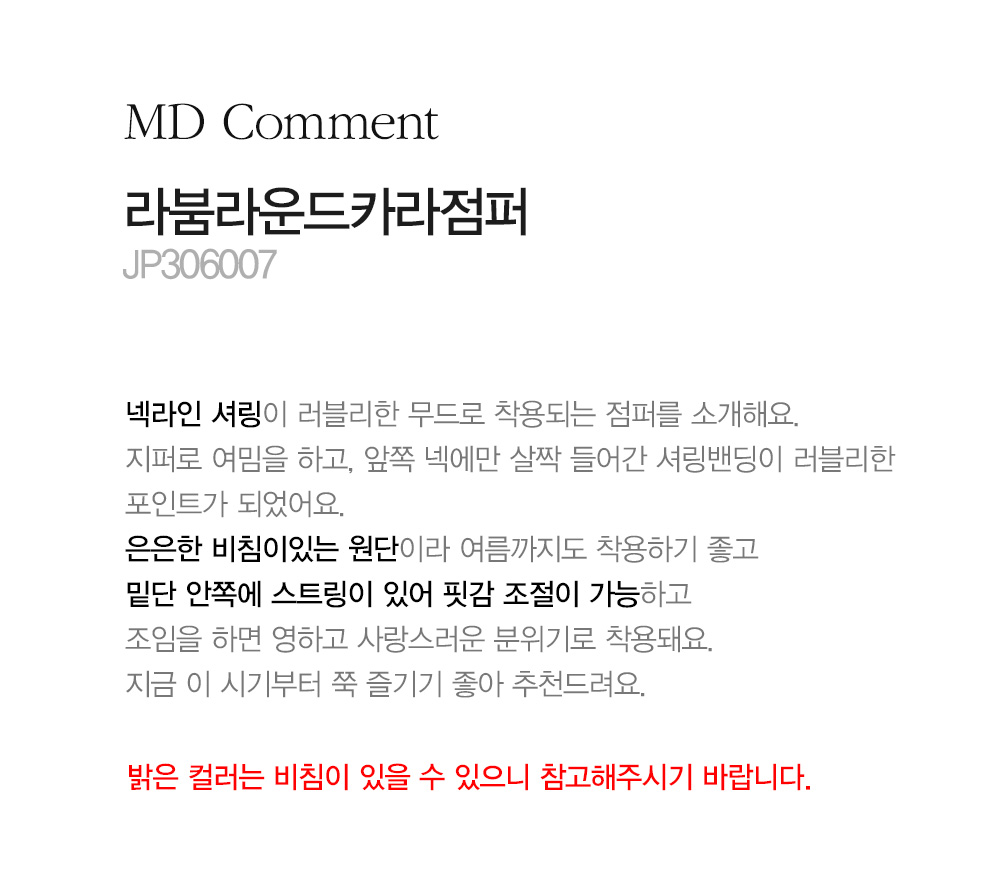 - 밝은 컬러는 비침이 있을 수 있으니 참고해주시기 바랍니다.