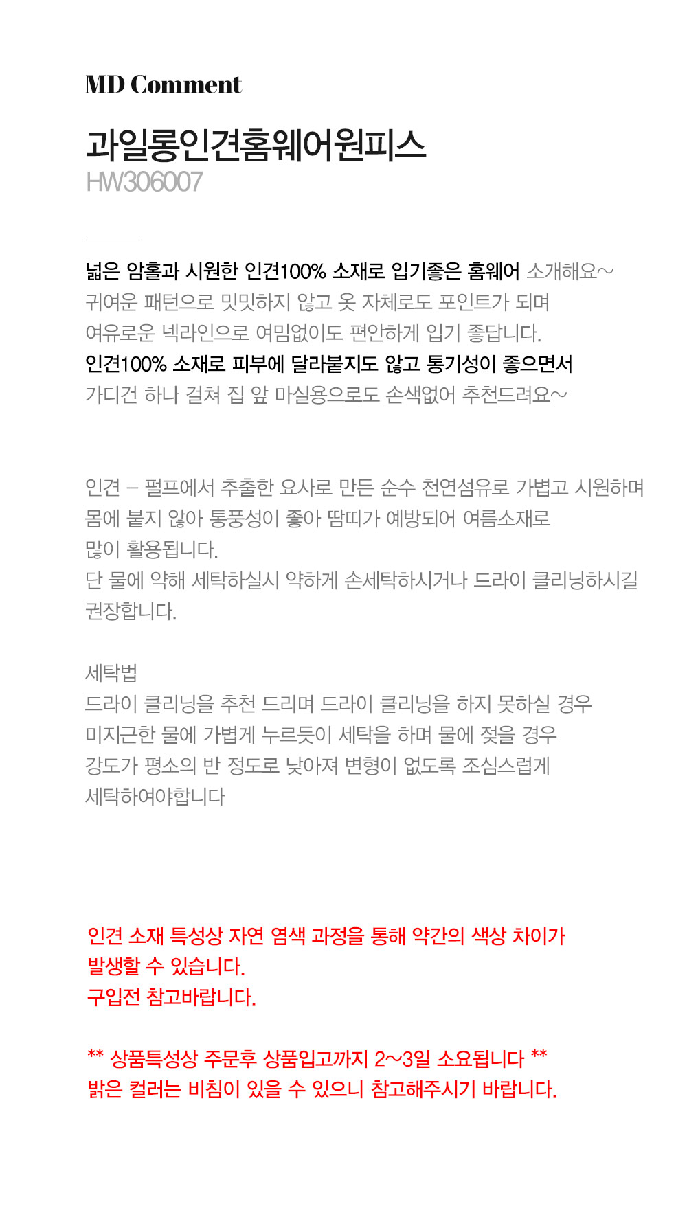 - 인견 소재 특성상 자연 염색 과정을 통해 약간의 색상 차이가 발생할 수 있습니다.