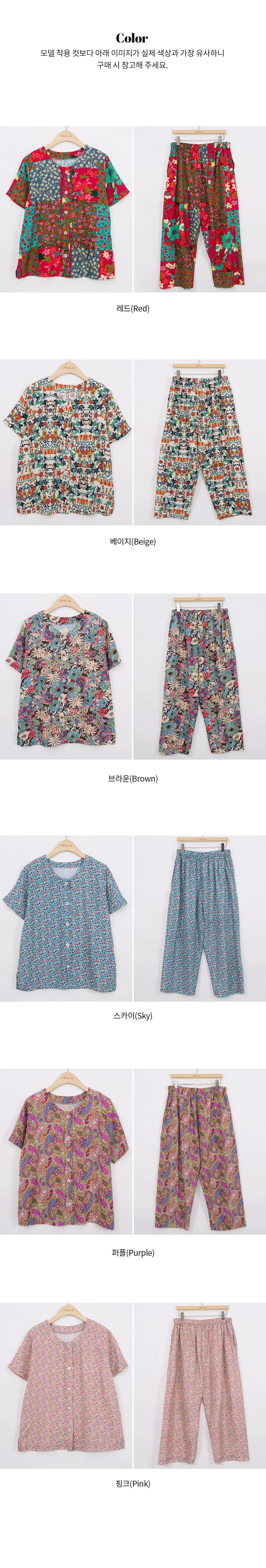 사이즈 총장(상/하) 어깨(단면)/허리(단면) 가슴(단면)/엉덩이(단면) 소매길이(단면)/밑위(단면) 암홀(단면)/허벅지(단면) 소매통(단면) 소매단(단면) 밑단(단면)(상/하)