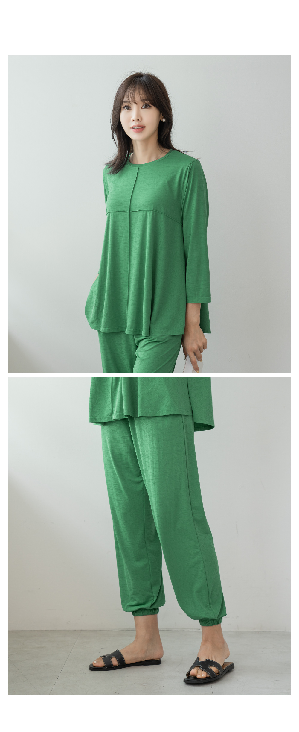 사이즈 총장(상/하) 어깨(단면)/허리(단면) 가슴(단면)/엉덩이(단면) 소매길이(단면)/밑위(단면) 암홀(단면)/허벅지(단면) 소매통(단면) 소매단(단면) 밑단(단면)(상/하) 목너비