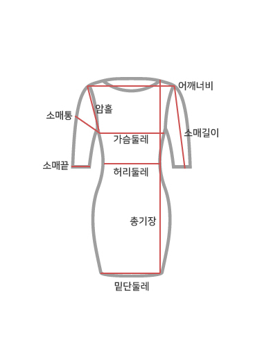 사이즈 총장 어깨 가슴(단면) 소매길이 암홀(단면) 소매통(단면) 소매단(단면) 밑단(단면)