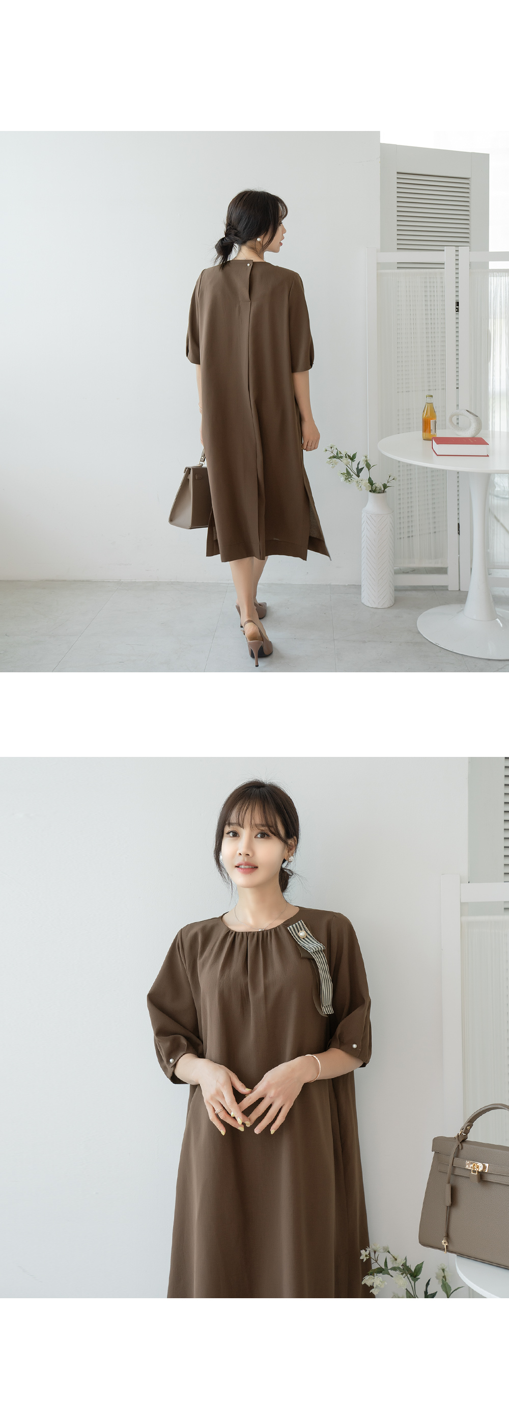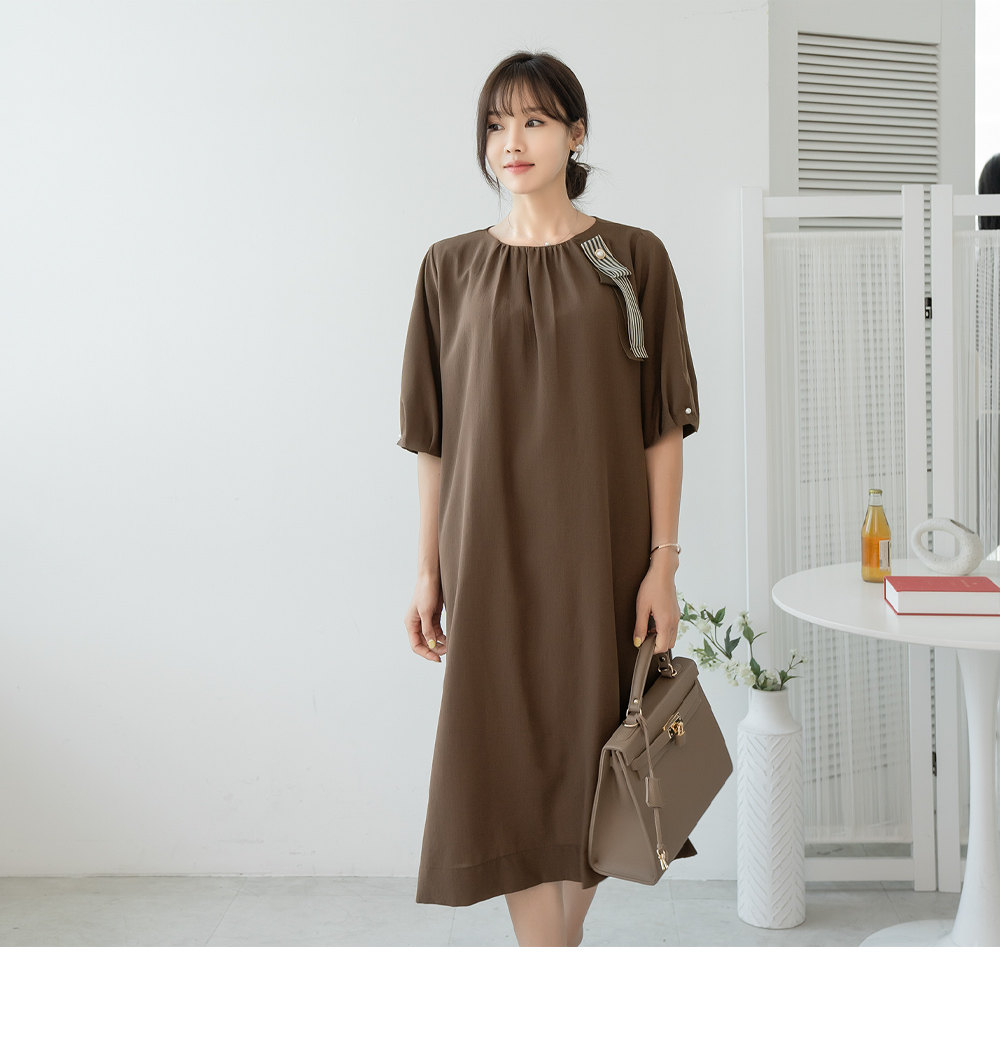 • Ribbon Brooch Dress-OP2308001-