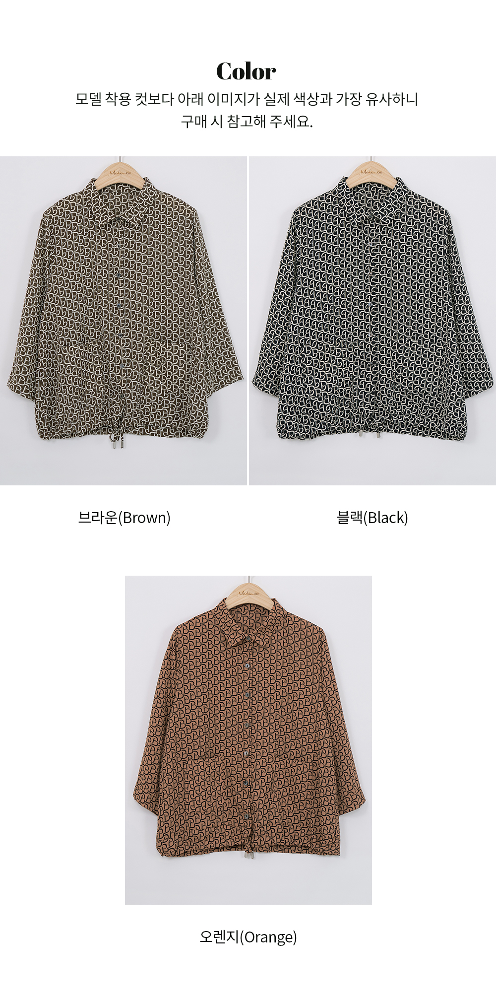 마담4060의 모든 의류 제품은 처음 1~2회 드라이크리닝을 권장합니다.