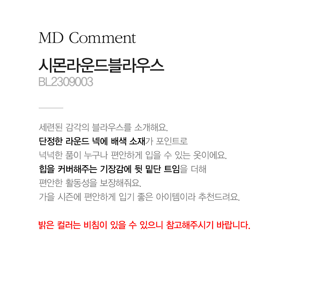 - 밝은 컬러는 비침이 있을 수 있으니 참고해주시기 바랍니다.