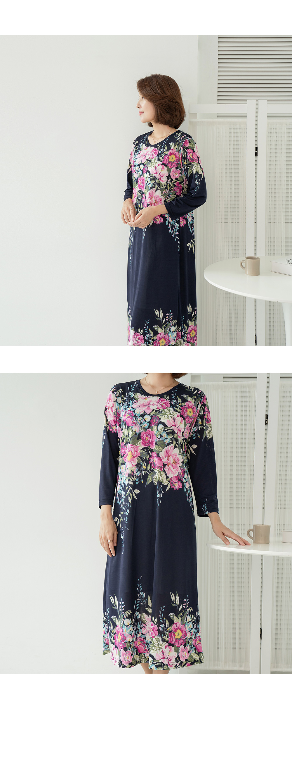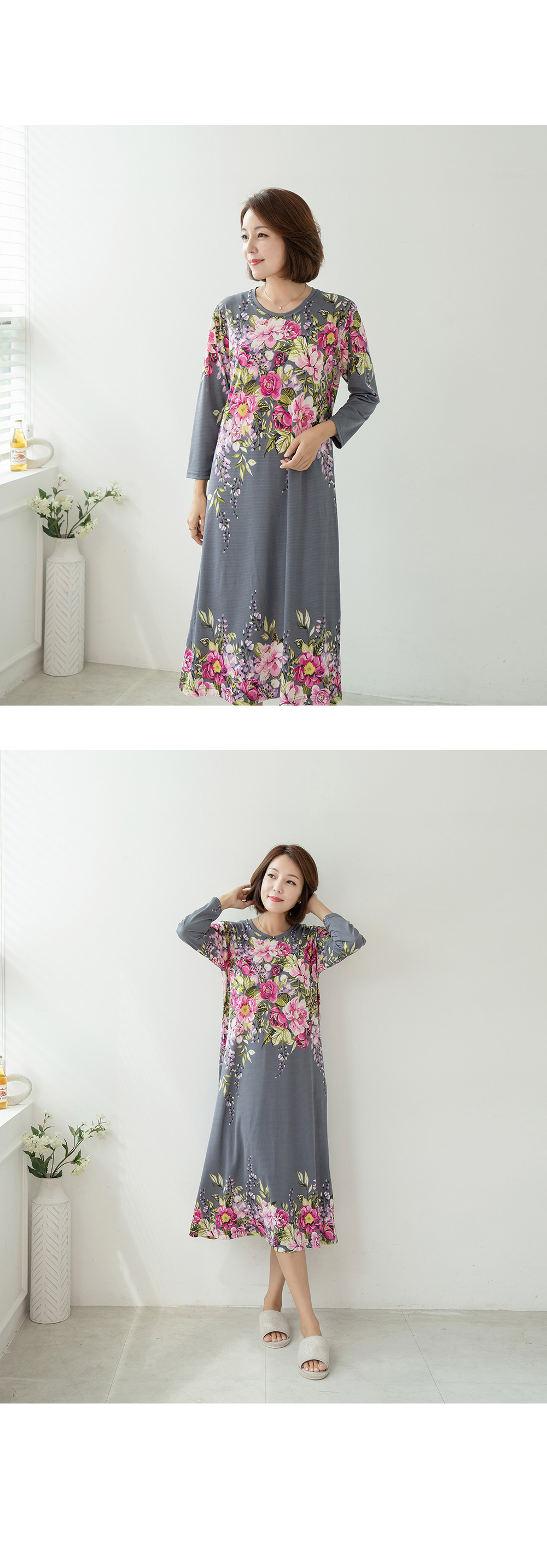 • Watercolor Flower Homewear Long Dress-HW2309004-