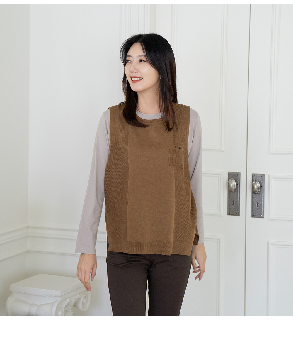 • Pocket daily knit vest-VE2309010-