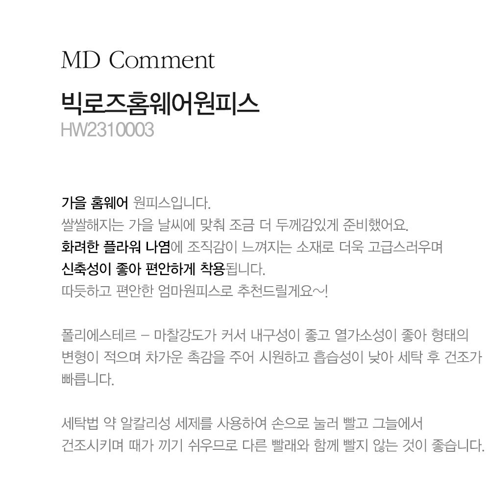 마담4060의 모든 의류 제품은 처음 1~2회 드라이크리닝을 권장합니다.