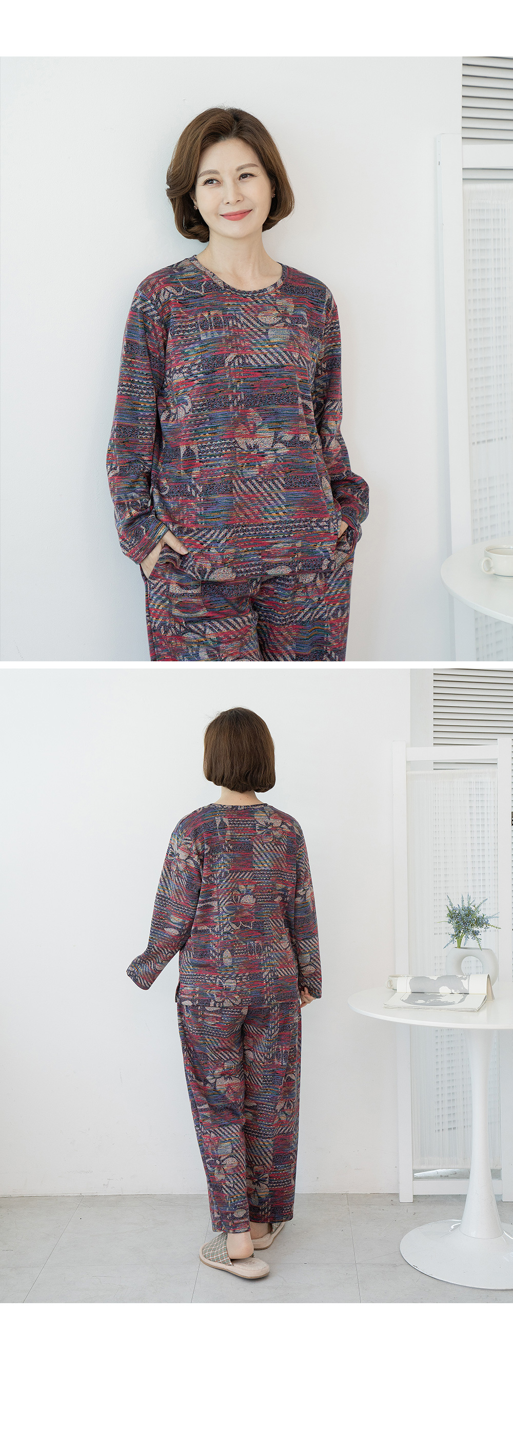사이즈 총장(상/하) 어깨(단면)/허리(단면) 가슴(단면)/엉덩이(단면) 소매길이(단면)/밑위(단면) 암홀(단면)/허벅지(단면) 소매통(단면) 소매단(단면) 밑단(단면)(상/하) 목너비