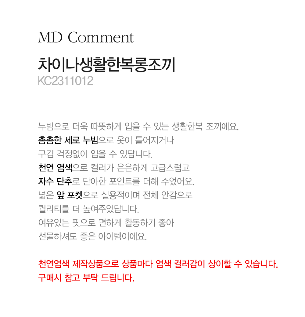 마담4060의 모든 의류 제품은 처음 1~2회 드라이크리닝을 권장합니다.