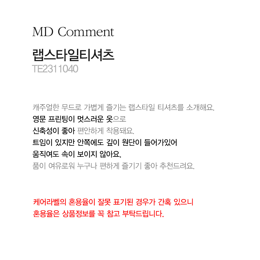 - 케어라벨의 혼용율이 잘못 표기된 경우가 간혹 있으니 혼용율은 상품정보를 꼭 참고 부탁드립니다.