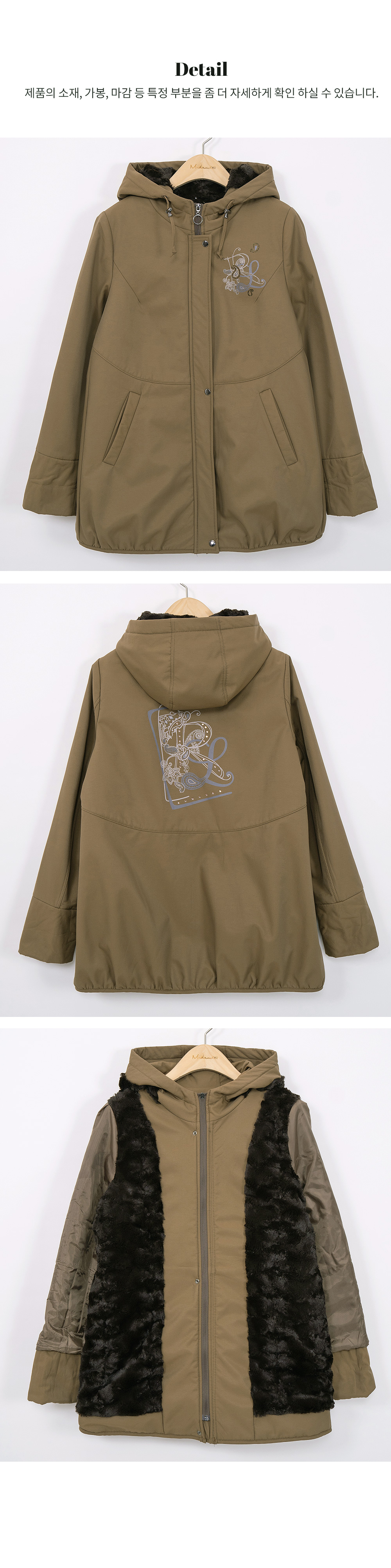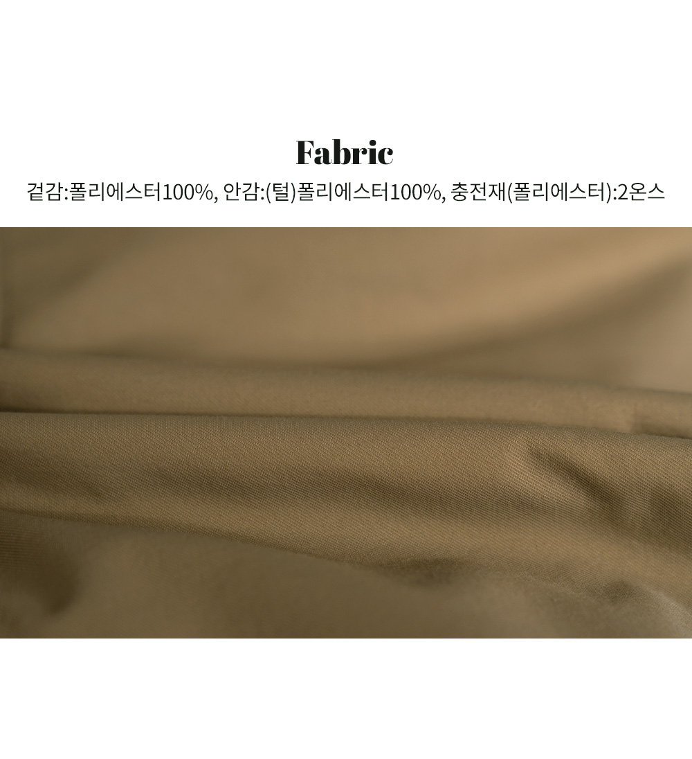 소재 겉감:폴리에스터100% 안감:(털)폴리에스터100% 충전재(폴리에스터):2온스