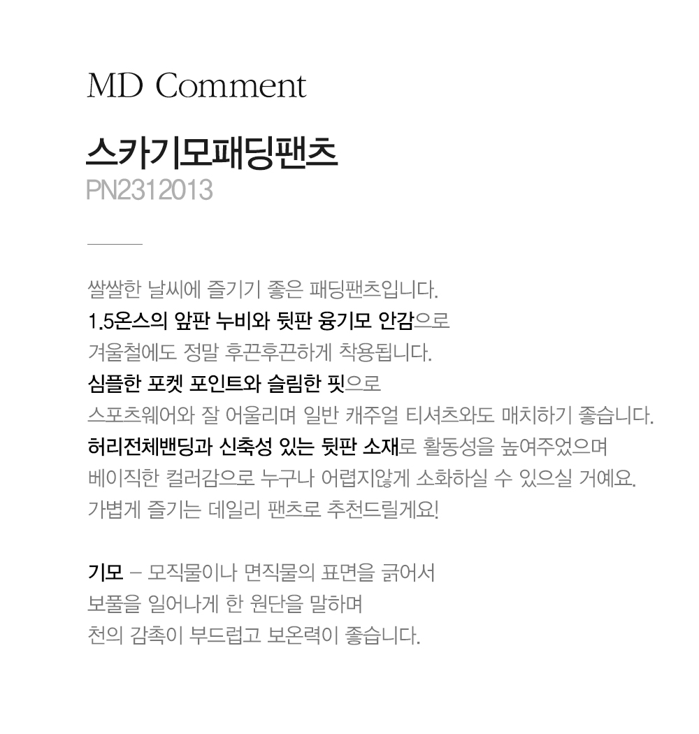 안 감 없어요 일부분 있어요 기모