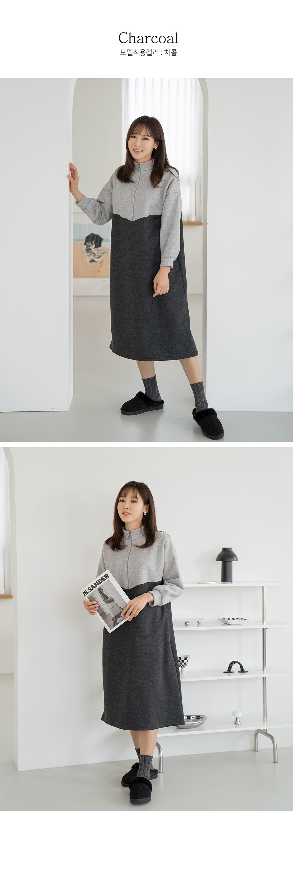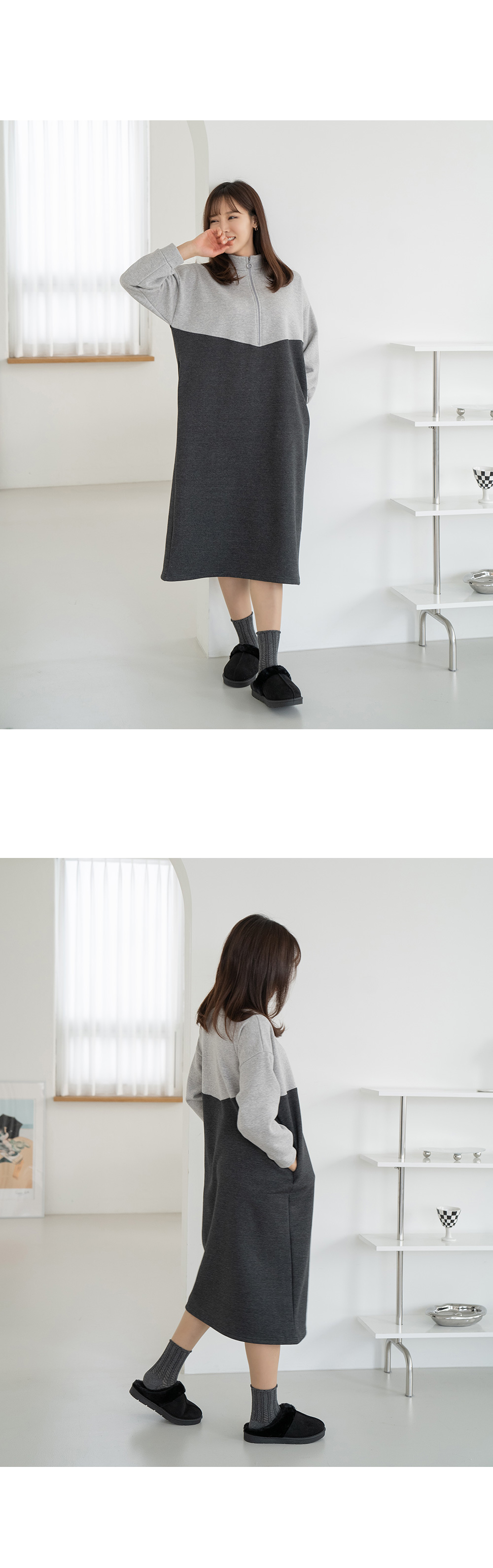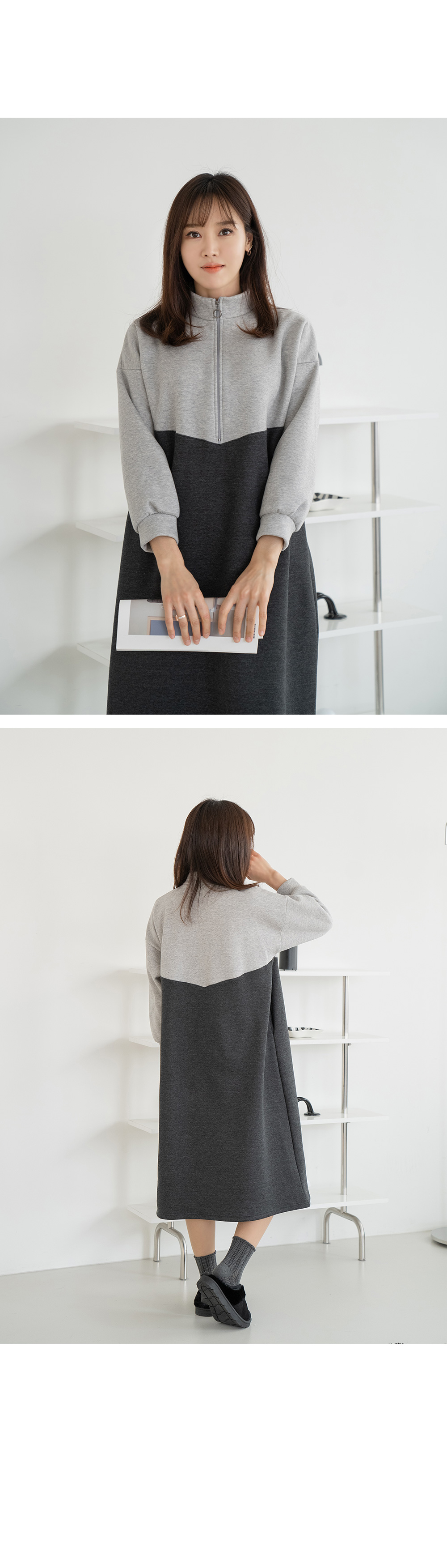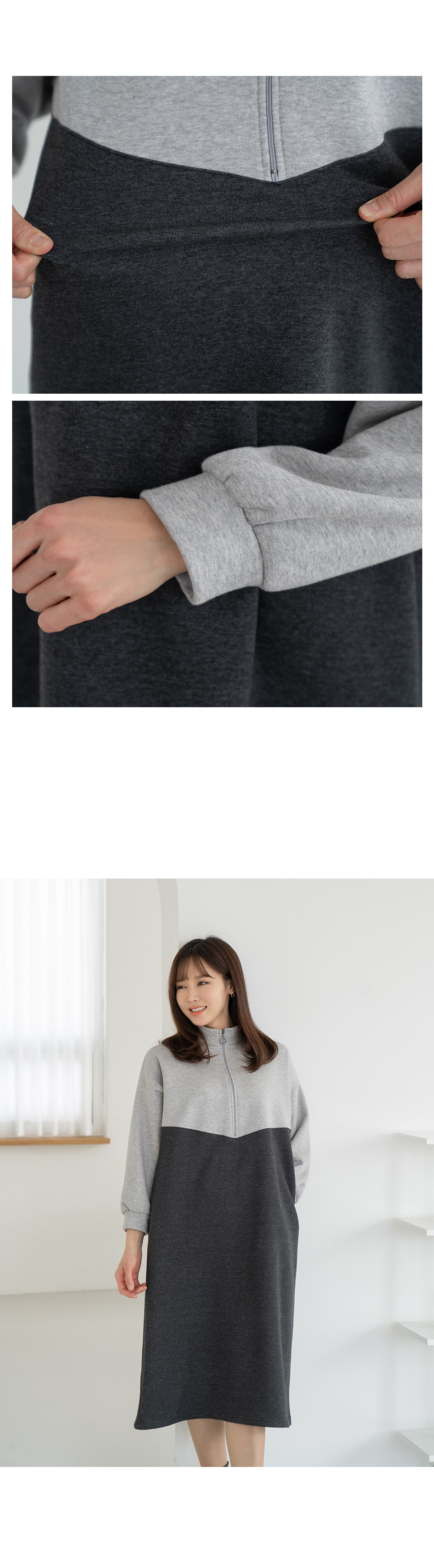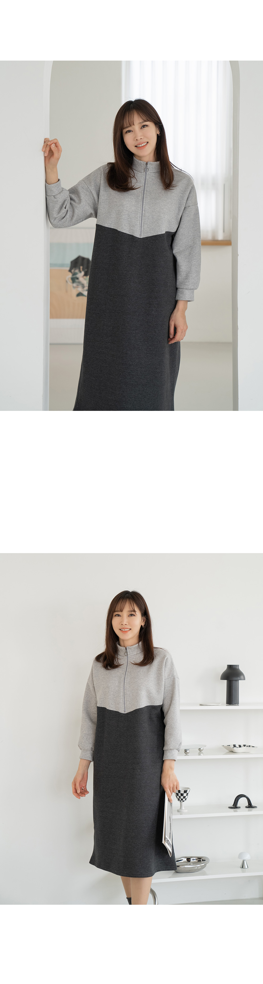 • Color matching zip-up dress-OP2312004-